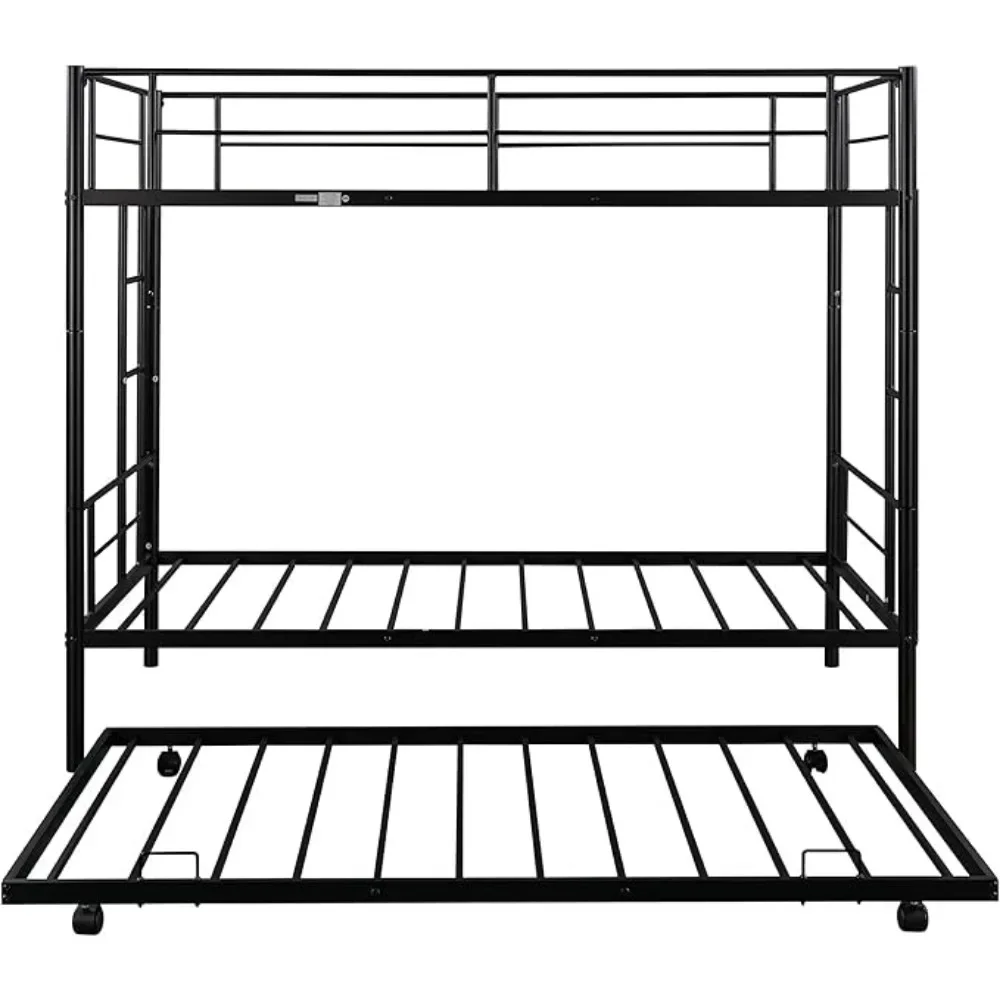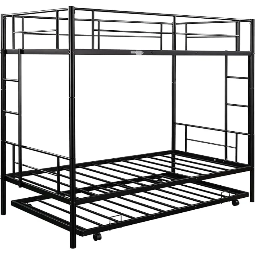 - Ultimate space saver, ideal for small bedrooms as it fits three standard twin size mattresses (sold separately). Trundle includes four (4) easy-glide casters – 2 locking and 2 non-locking