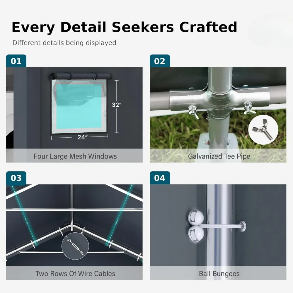 - 【Multipurpose Use】13'x24' portable carport shed is suitable for not only storing cars, boats, and trucks, but also for outdoor events like parties, weddings, and commercial fairs
