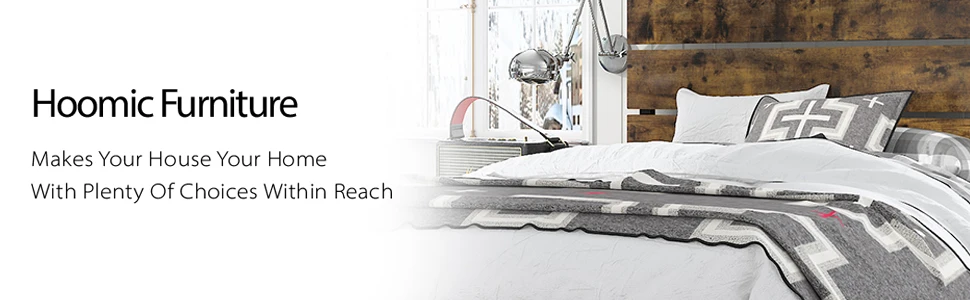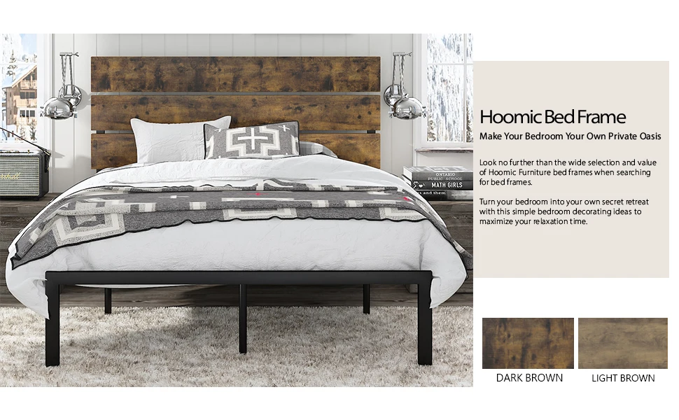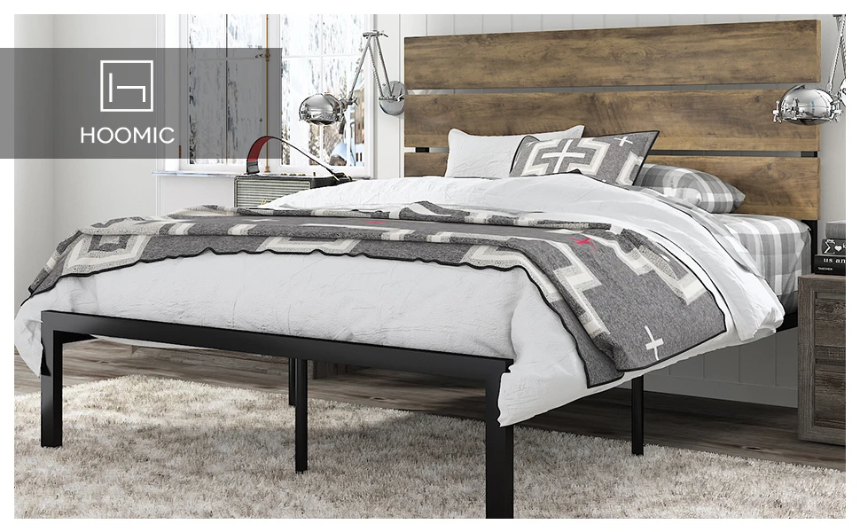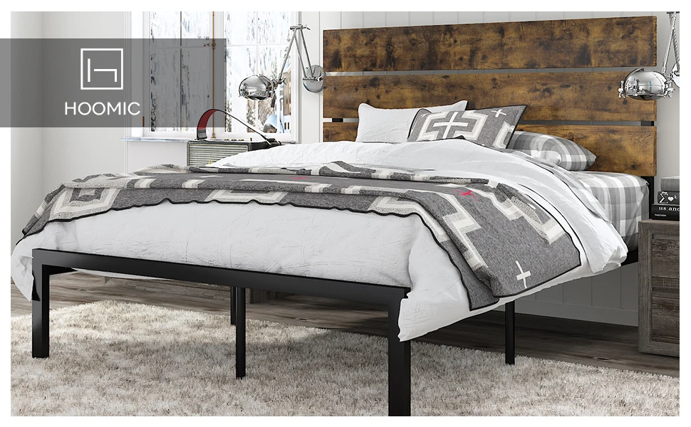 HOOMIC Bed Frame with Rustic Wooden Headboard/Heavy Duty Platform Bed Frame/Mattress Foundation/Strong Metal Slats Support