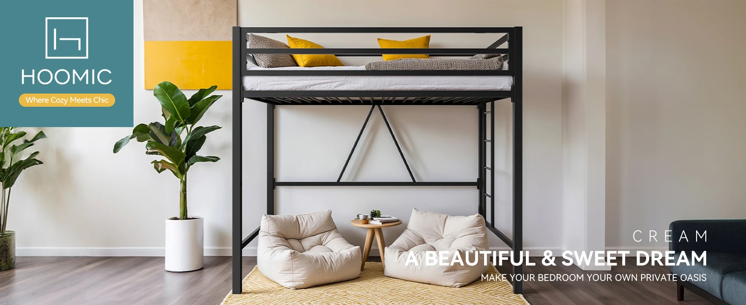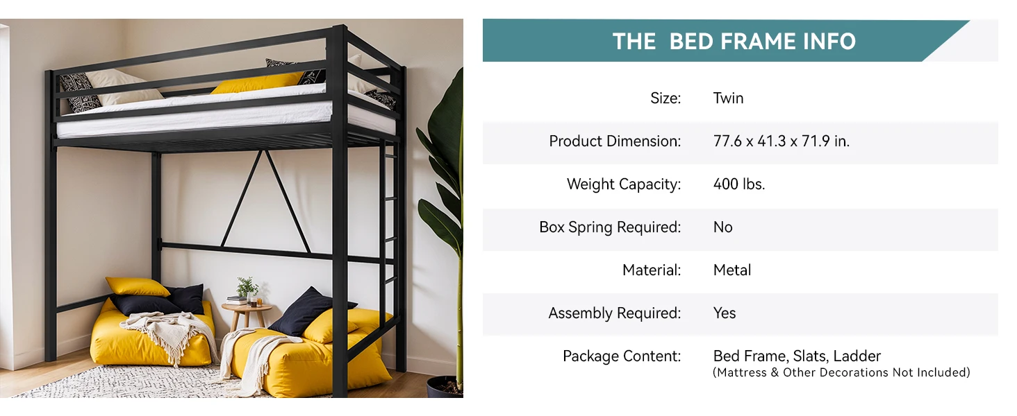 Sturdy Construction: Made from high-quality metal, this loft bed frame provides strong support and durability for long-term use