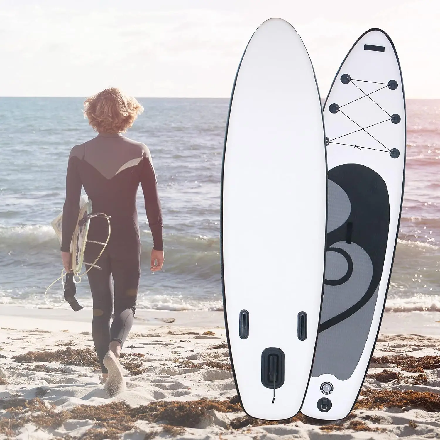 Inflatable Stand up Paddleboard for 2 Adults Men Women Kids,10.5 ft Blow up SUP Board Set for Beach,
