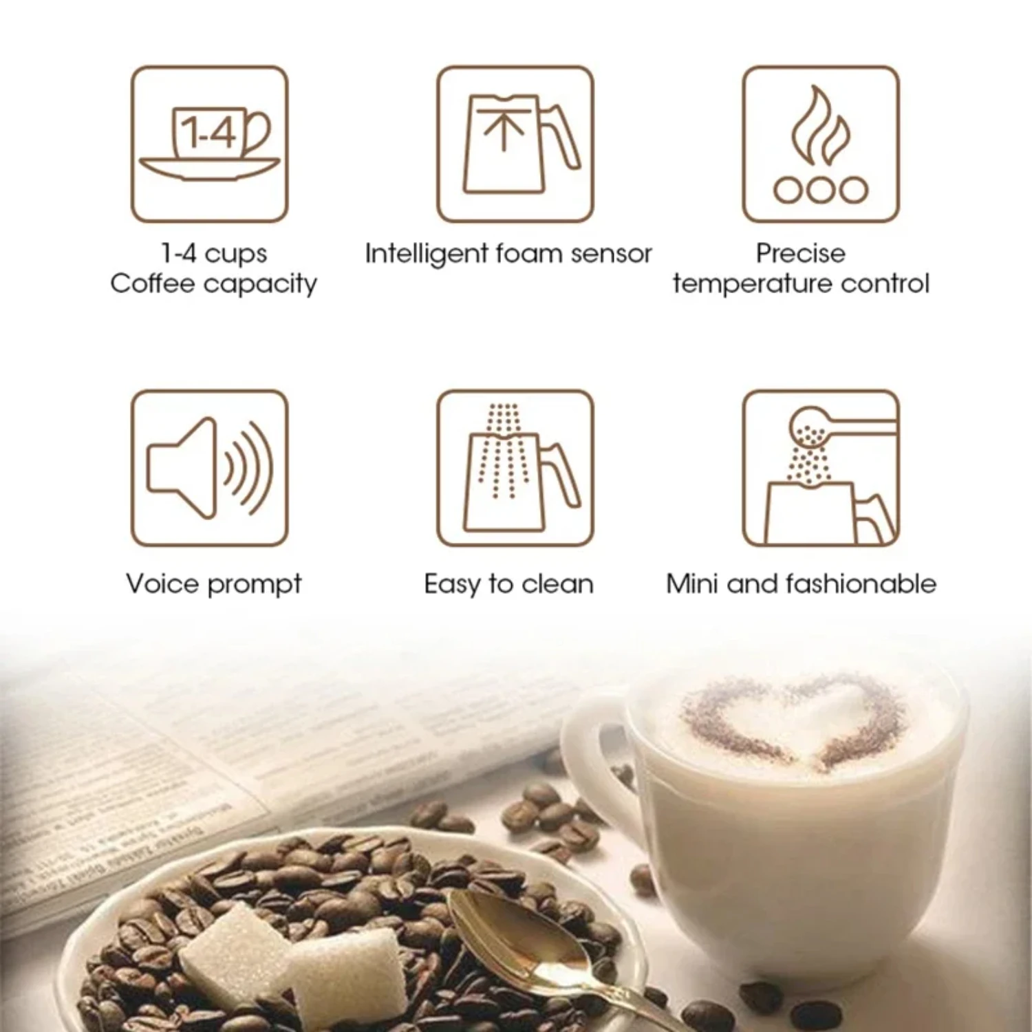 4.Quick and easy operation - It only takes 5 minutes to make coffee for 4 persons.