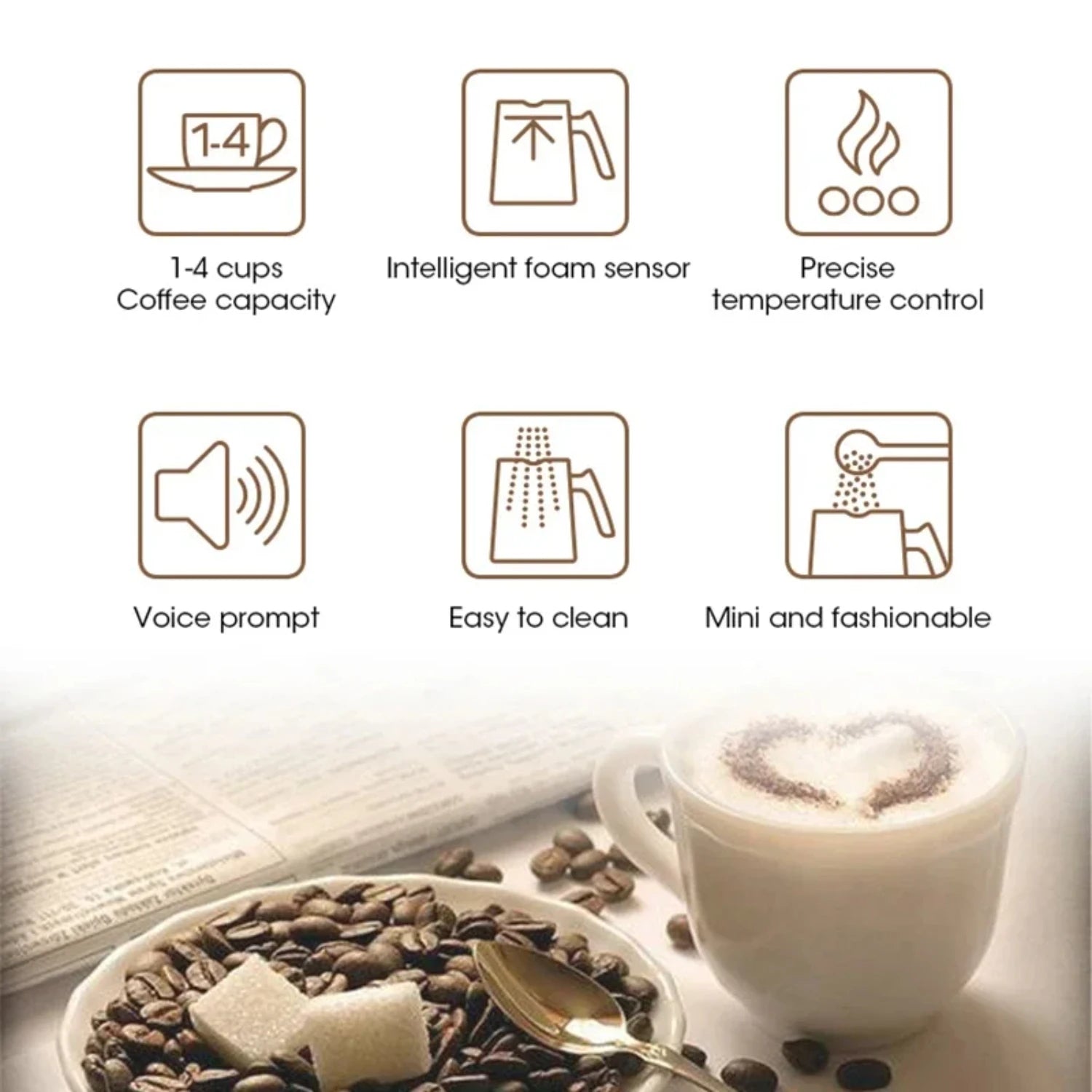 Italian Espresso Coffee Maker Mocha Coffee Tea Hot Milk Machine Cappuccino Foamer