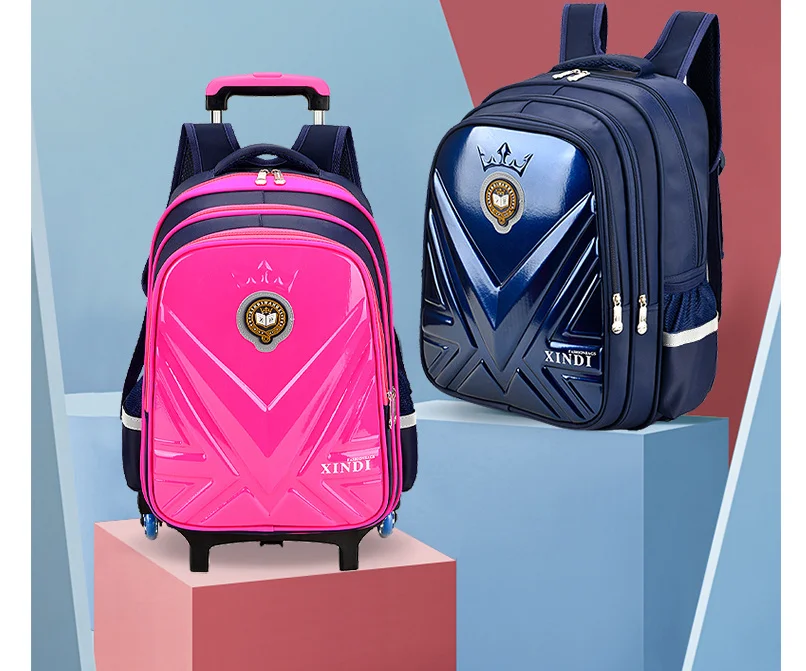kids PU 3D School Wheeled Backpack for boys Children Rolling Luggage Suitcase Travel Trolley Bag for kids Schoolbag on wheels