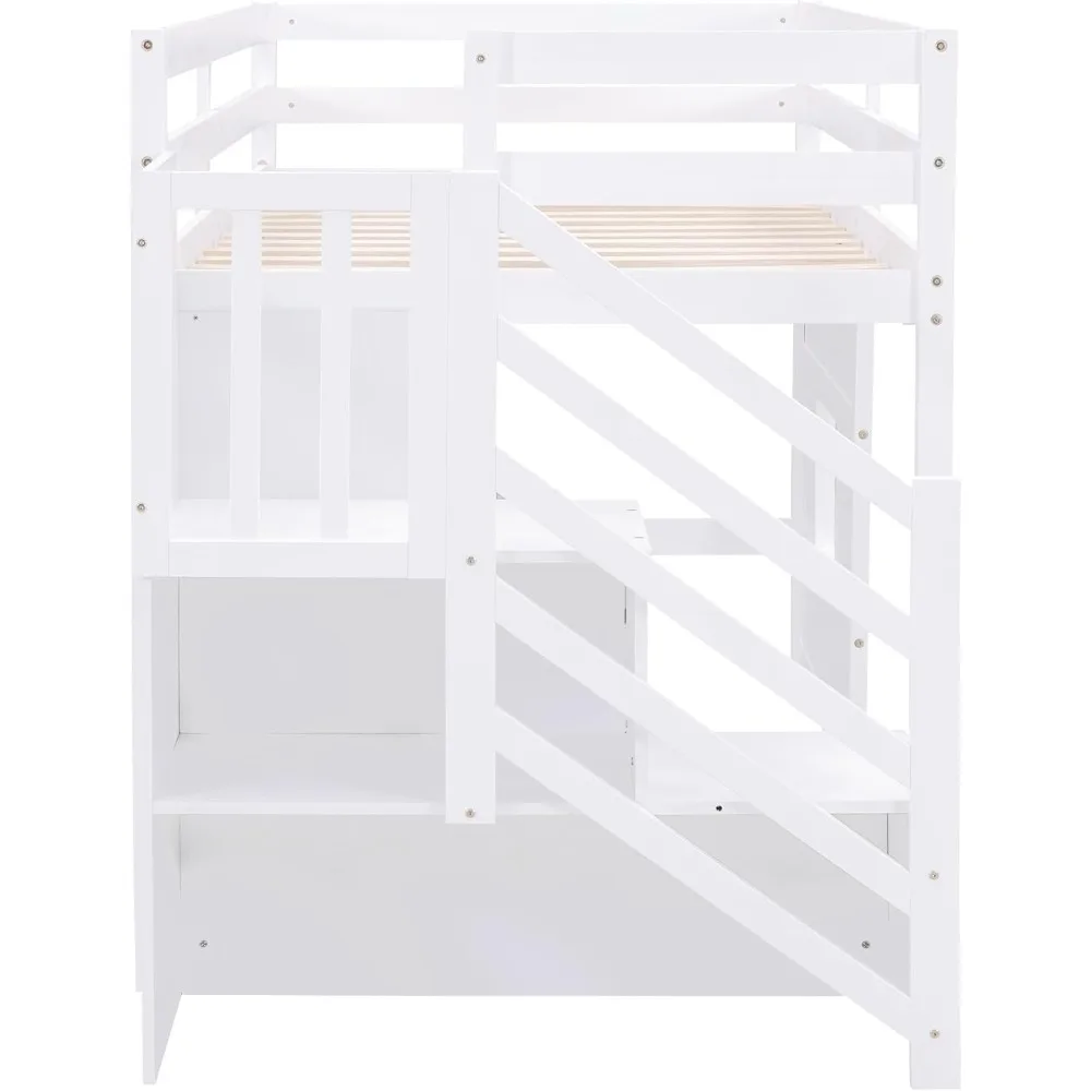 Loft Bed with Stairs Designs Low, 94.8"L x 41.8"W x 50.6"H Twin Bed Frame for with Storage, Low Loft Bed with Storage Staircase