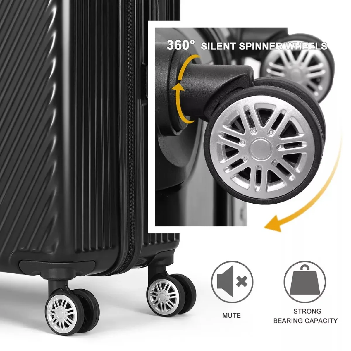 Spinner Wheels: The hard shell suitcase have four double spinner wheels for 360 Degree effortless mobility in any direction, smooth and quite, solid enough to carry larger weight, and it is detachable and keep super low noise.