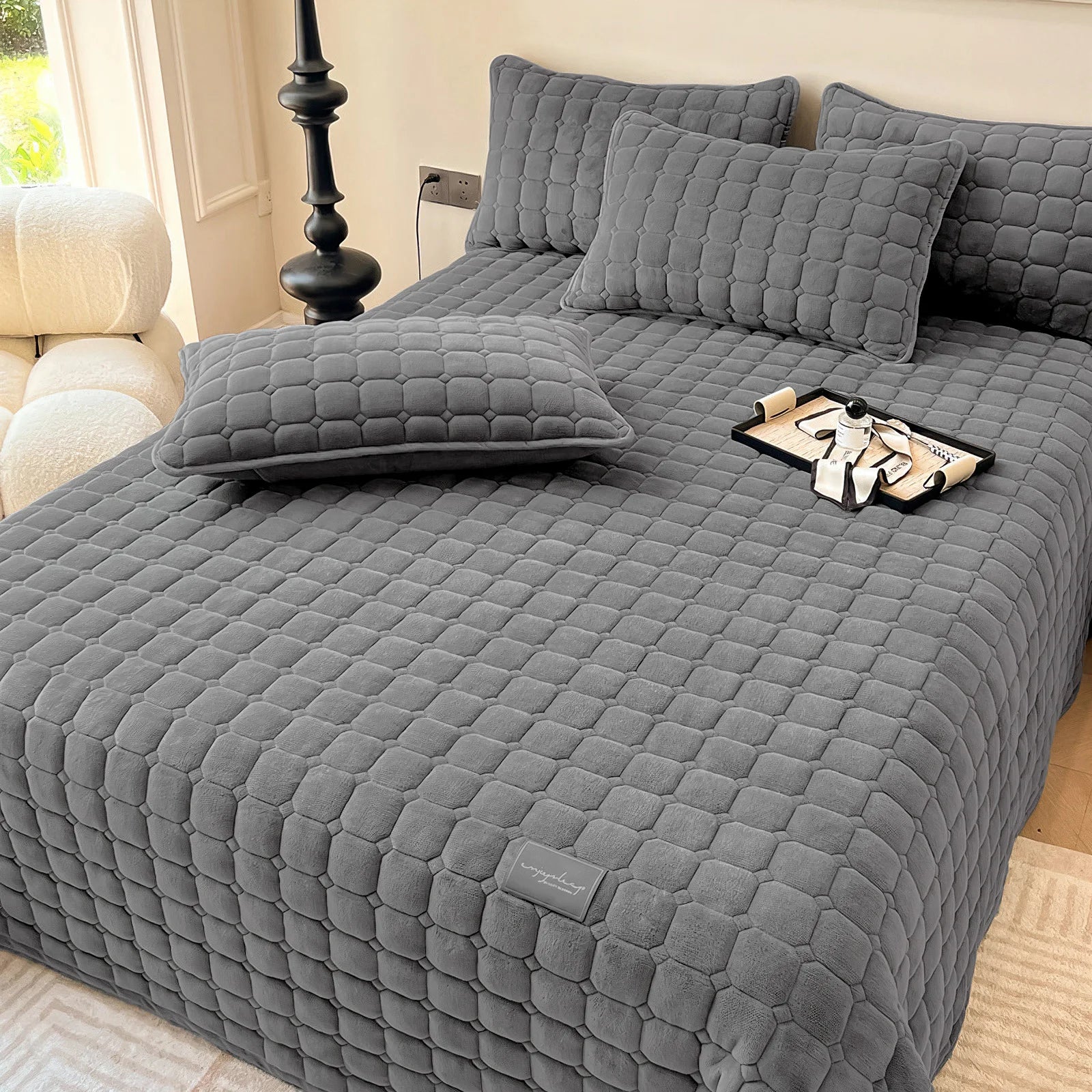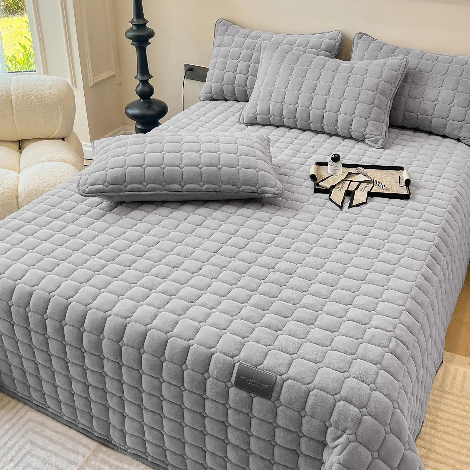 Luxury Velvet Quilt Set King Size Lightweight Velvet Comforter Set Oversized Bedspread Coverlet Quilted Bedding Set 2 Pillowcase