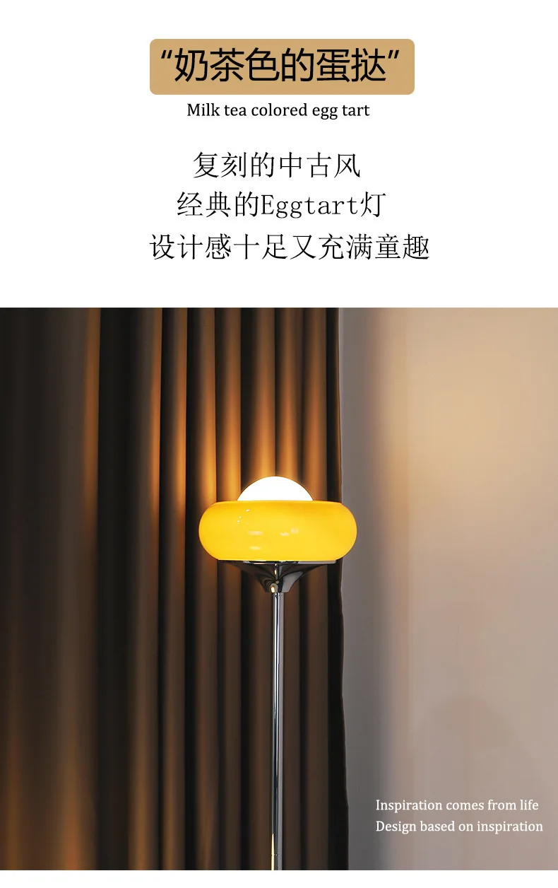 Medieval Bauhaus Floor Lamp American Retro Warm Egg Tart Floor Lights Nordic Bedroom Bedside Standing Lamps for Living Room