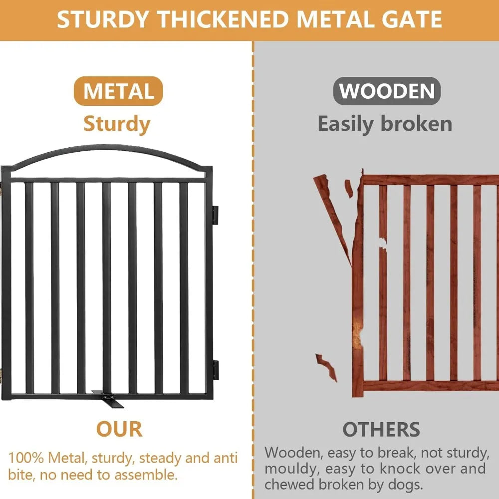 - 【Sturdy Metal Dog Gate】Upgraded freestanding dog gate is made of 100% high-quality thickened metal, sturdy metal frame structure, combine metal support feet & non-slip sheets, steady, no worry about the dog gate being pushed down, bite by dogs. Unlike the wooden materials seen in other pet gates, our pet doors with metal construction are quite strong and stable, and can be used for many years