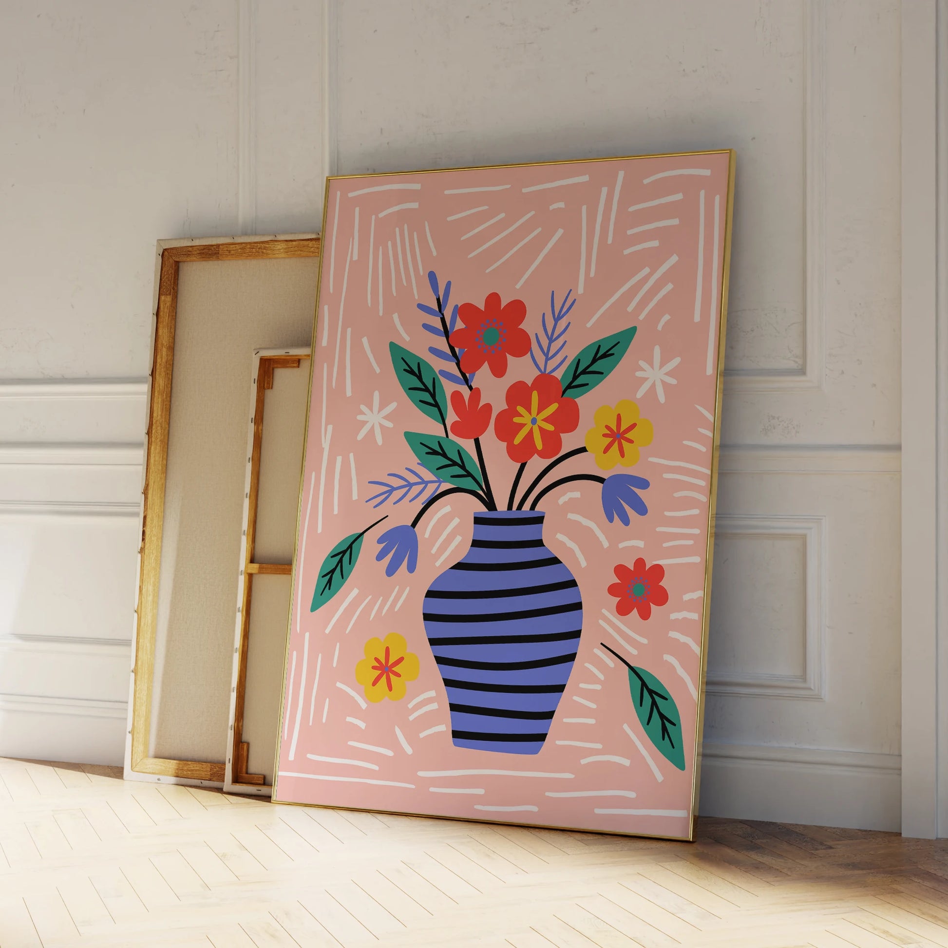 Modern A Vase With Flowers In It On A Pink Background Wall Art Prints Canvas Painting Poster Picture For Living Room Home Decor