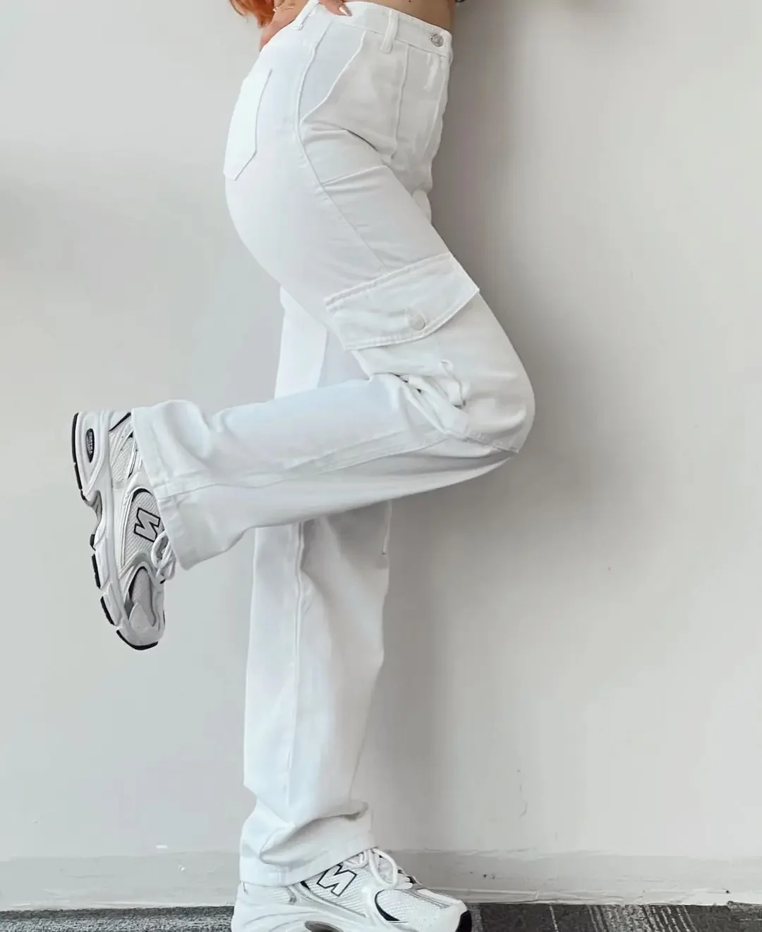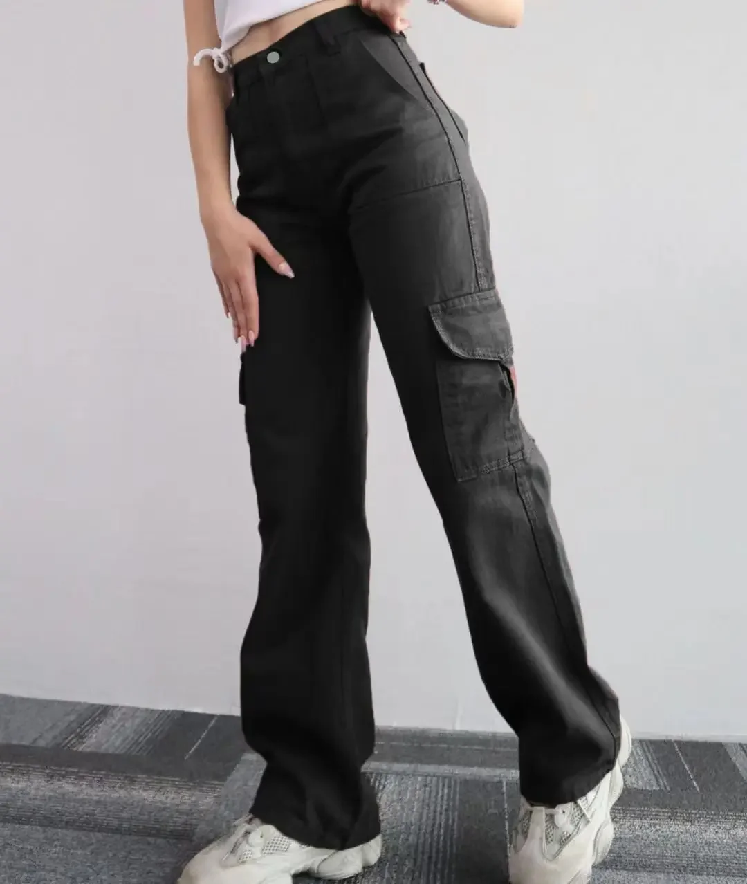 New Straight Cargo Pants Women High Waist Baggy Trousers Casual Wide Leg Slim Vintage Y2K Streetwear Pocket Fashion Casual Pants
