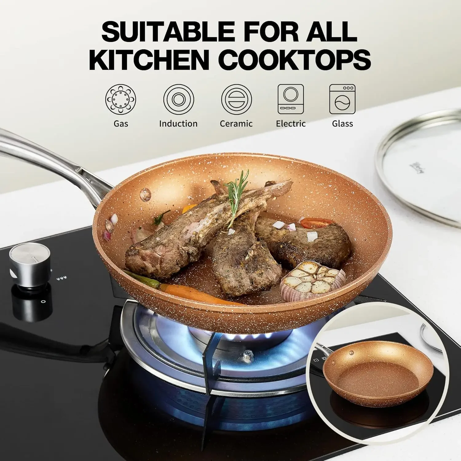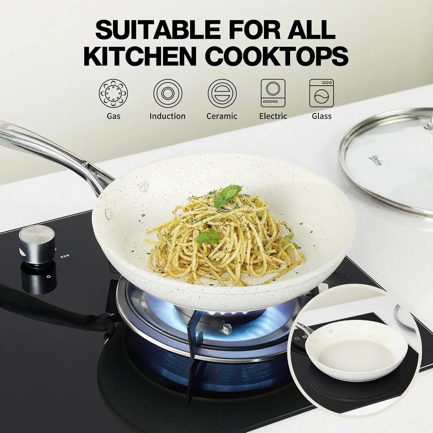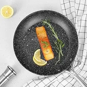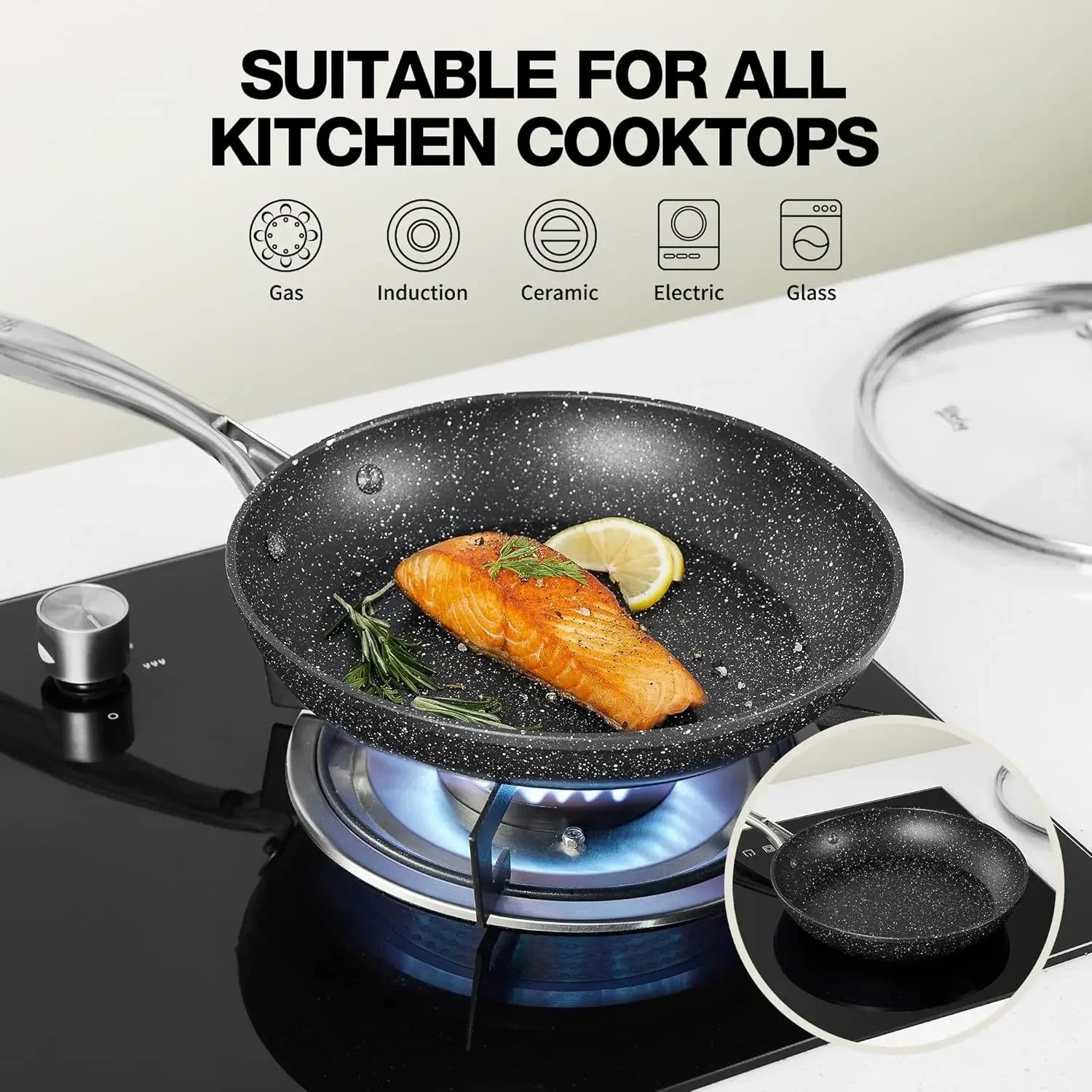 Nonstick Frying Pan with Lid,Black Marble Cookware,Stone-Derived Coating with Heat-Resistant Handle Pot and Pans Healthy Cooking