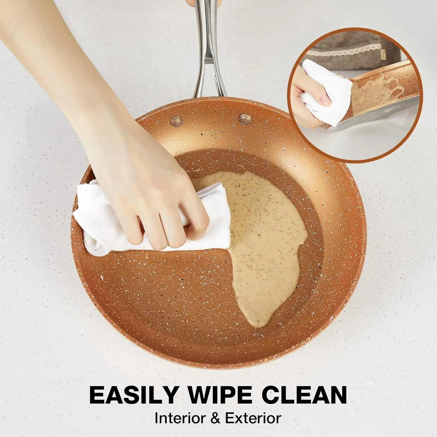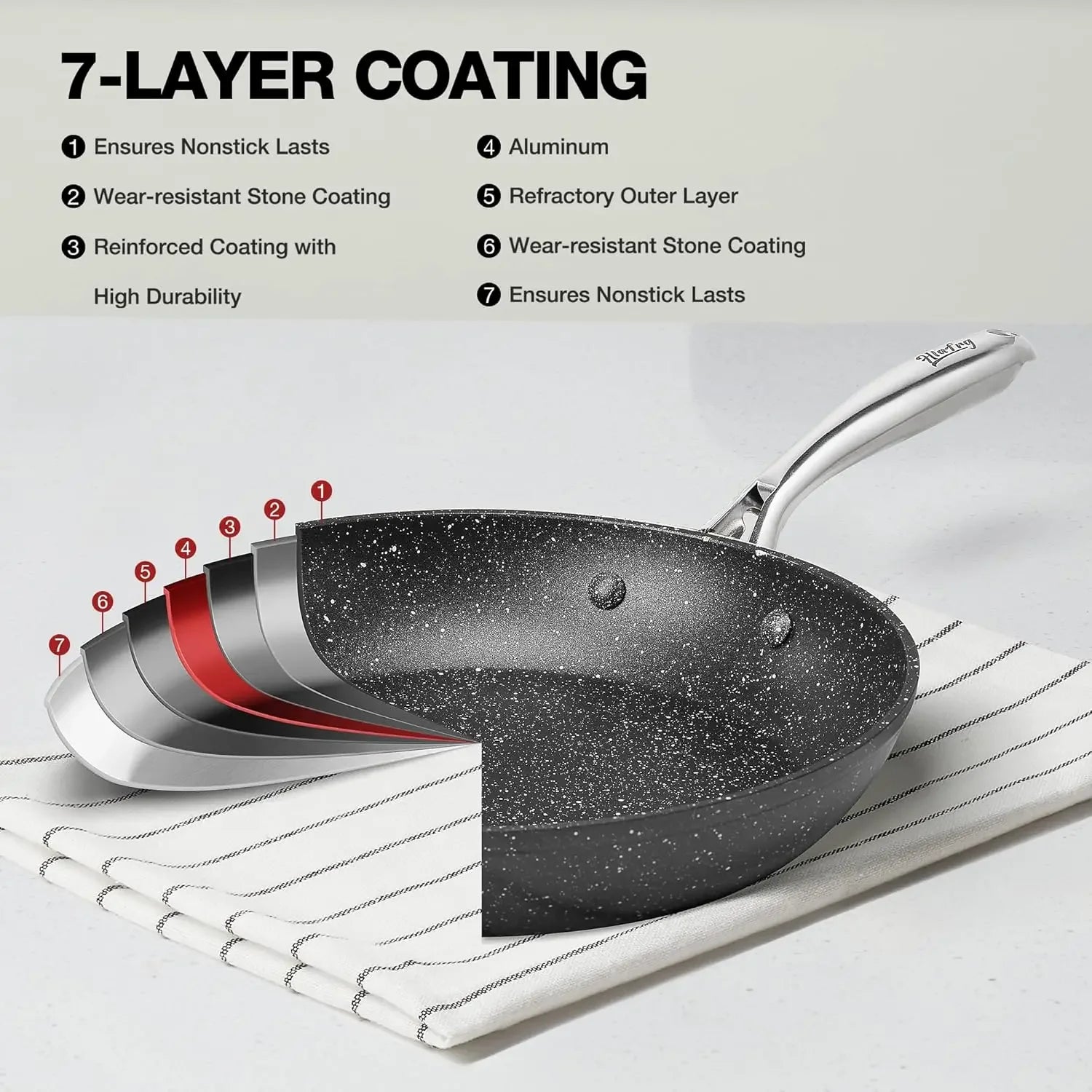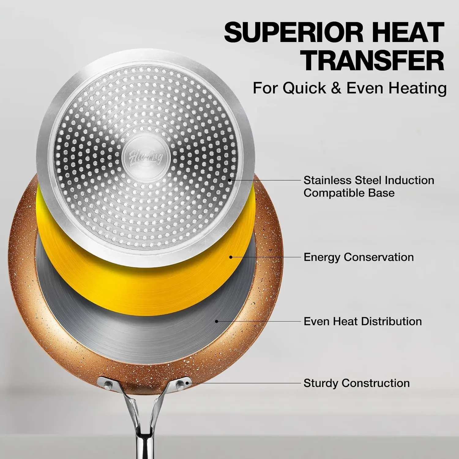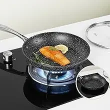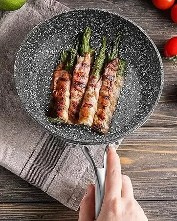 Nonstick Frying Pan with Lid,Black Marble Cookware,Stone-Derived Coating with Heat-Resistant Handle Pot and Pans Healthy Cooking