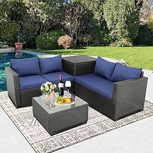 4 Piece Patio Sectional Set with Storage Box