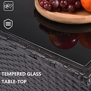 √ 【MATERIAL】 - Made of durable PE wicker and high quality steel frame. Sturdy tempered glass tabletop. Strong steel frame supports sofas stability and balance. Tempered glass can prevent the table from scratches. It can be used for a long time.