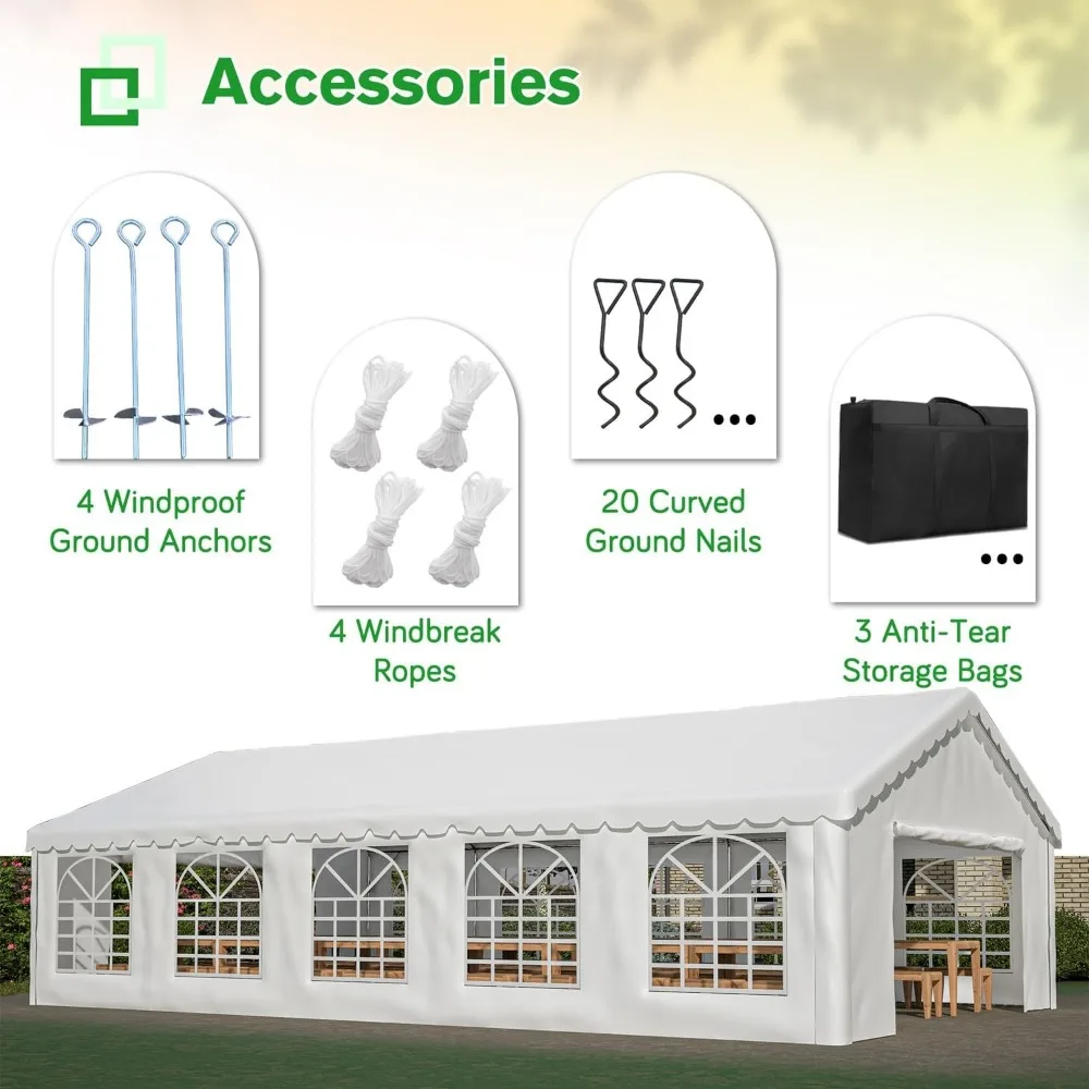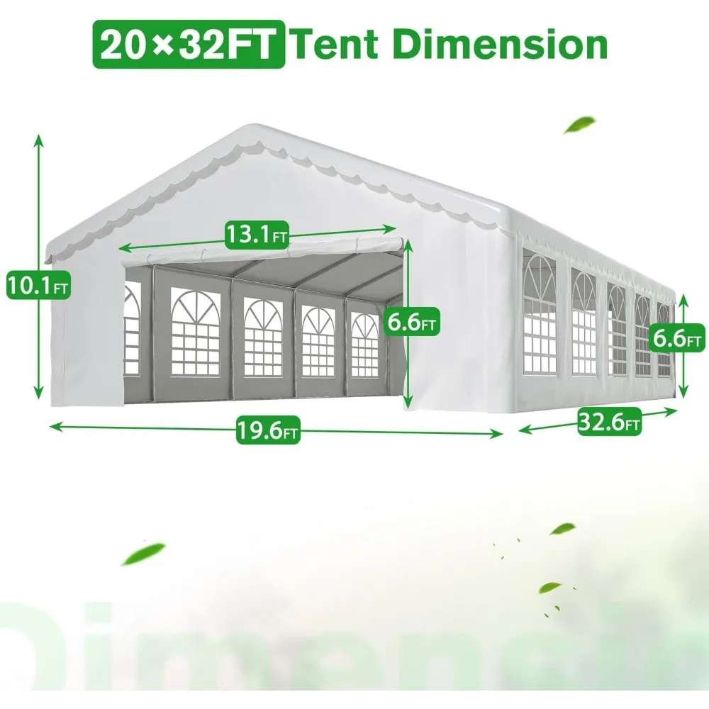 Outdoor Heavy-Duty Party Tent, Upgraded Galvanized Gazebo Wedding Canopy Big Tents with 3 Storage Bags, 20’ X 32’