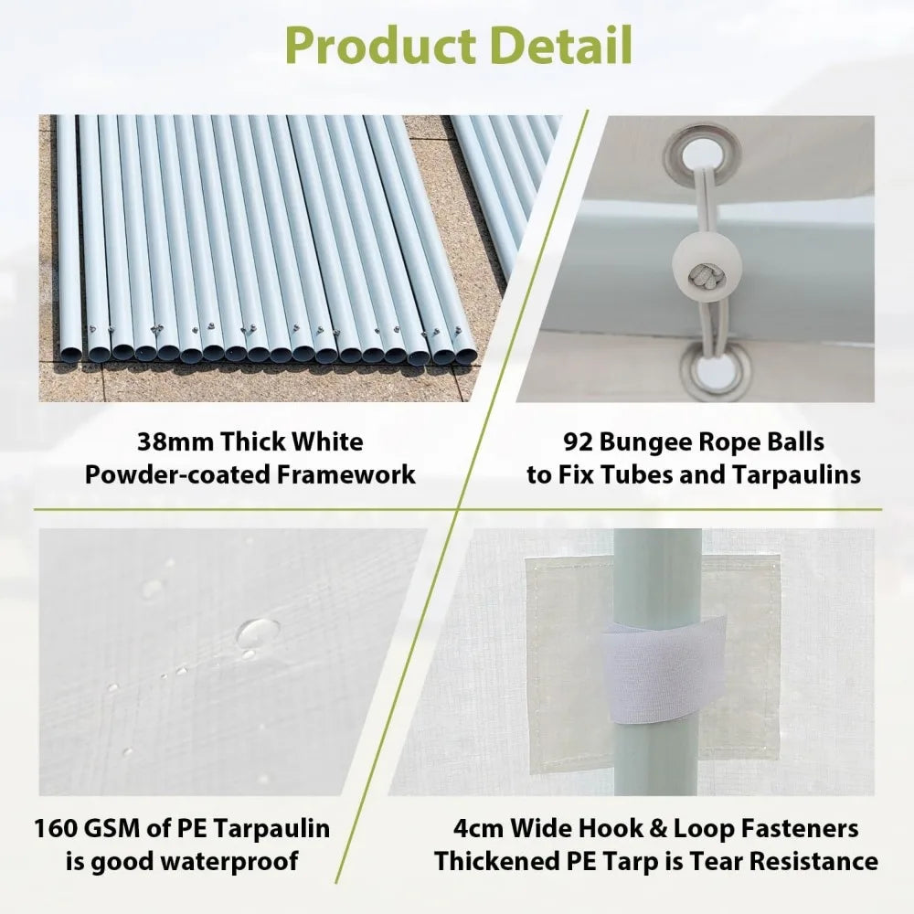 【Multiple Usage】The party canopy tent is perfect for outdoor patio leisure events, parties, weddings, camping, and so on. And you can use the wedding tent for a backyard barbecue with your friends, or the canopy tent is the best choice for your birthday party as well.