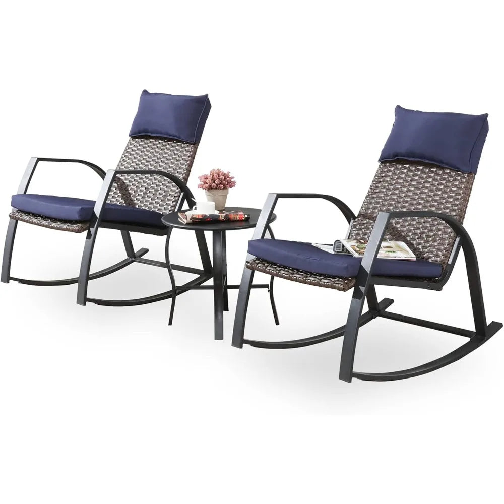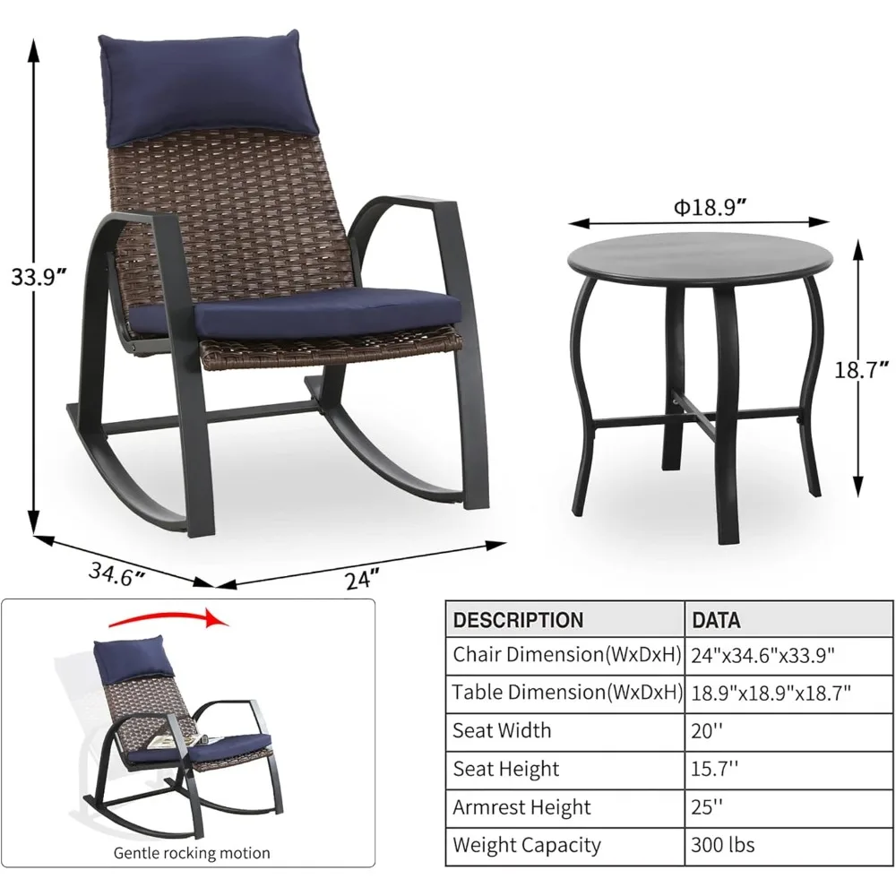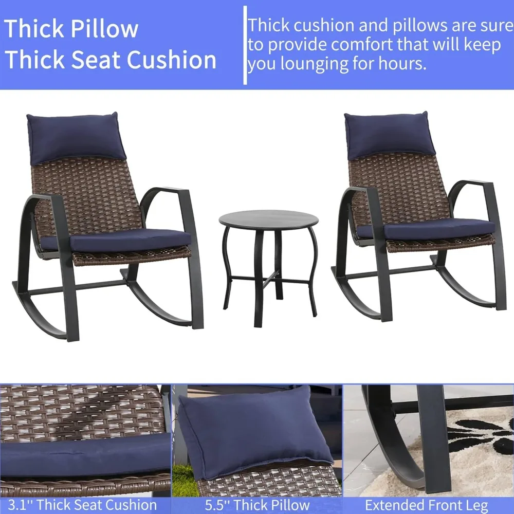 Patio Furniture Set 3 Pieces Outdoor Furniture Cushioned Rocking Chairs with Side Table Pillow All Weather Frame