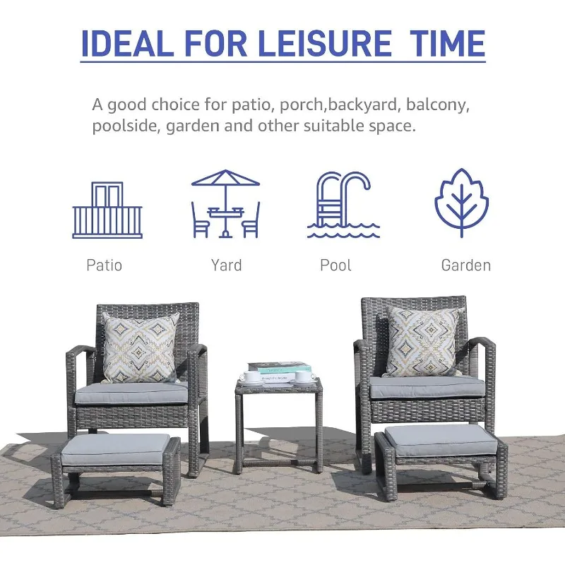 - ๐น[Space Saving Design]: 2 ottomans with thick and soft cushions, provide you with an extra space for sitting or resting your feet. It can also be stored under the chair for less space occupied. Playing the role of sofa and chair, this set is ideal for garden, lawn, porch, poolside, balcony, any indoor and outdoor space.