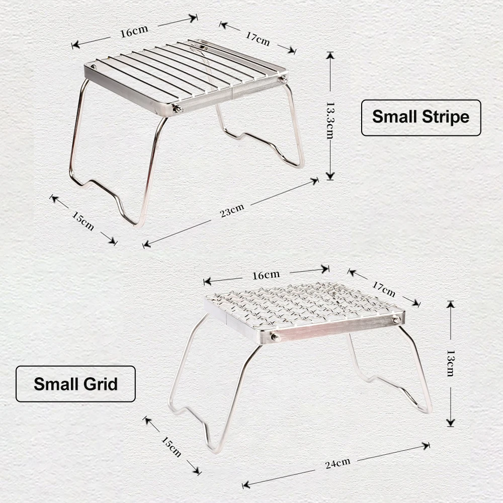 4.The currently launched grill size is 6.3 * 6.7 inches, with a folding thickness of approximately 1 inch. After opening the folding leg, it is approximately 5.1 inches, and you can choose between grid and stripe styles as needed.