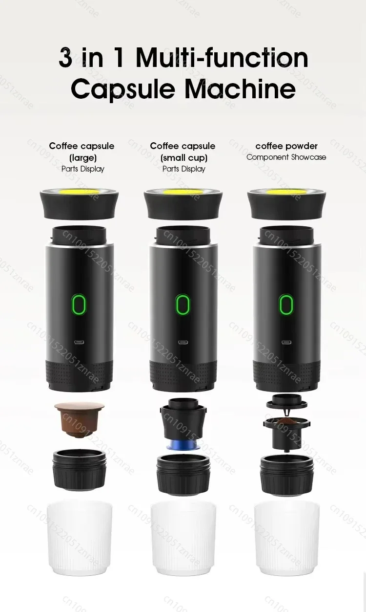【Multi-compatible】The 3-in-1 portable espresso machine is equipped with a ground coffee compartment and a capsule compartment, which is compatible with small and large capsules and ground coffee.