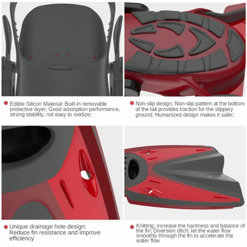 [Instructions for use]: Fins are auxiliary tools used to increase speed, reduce resistance and enhance power during swimming and diving. Foot Cover Fins wrap the entire sole of the foot with the foot cover. When snorkeling, the foot fins are softer, which can reduce the lift of the fins on the water surface.