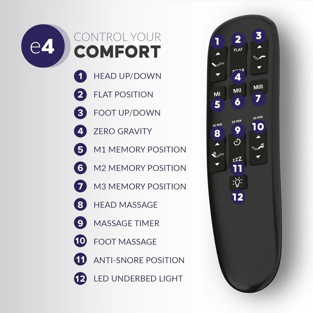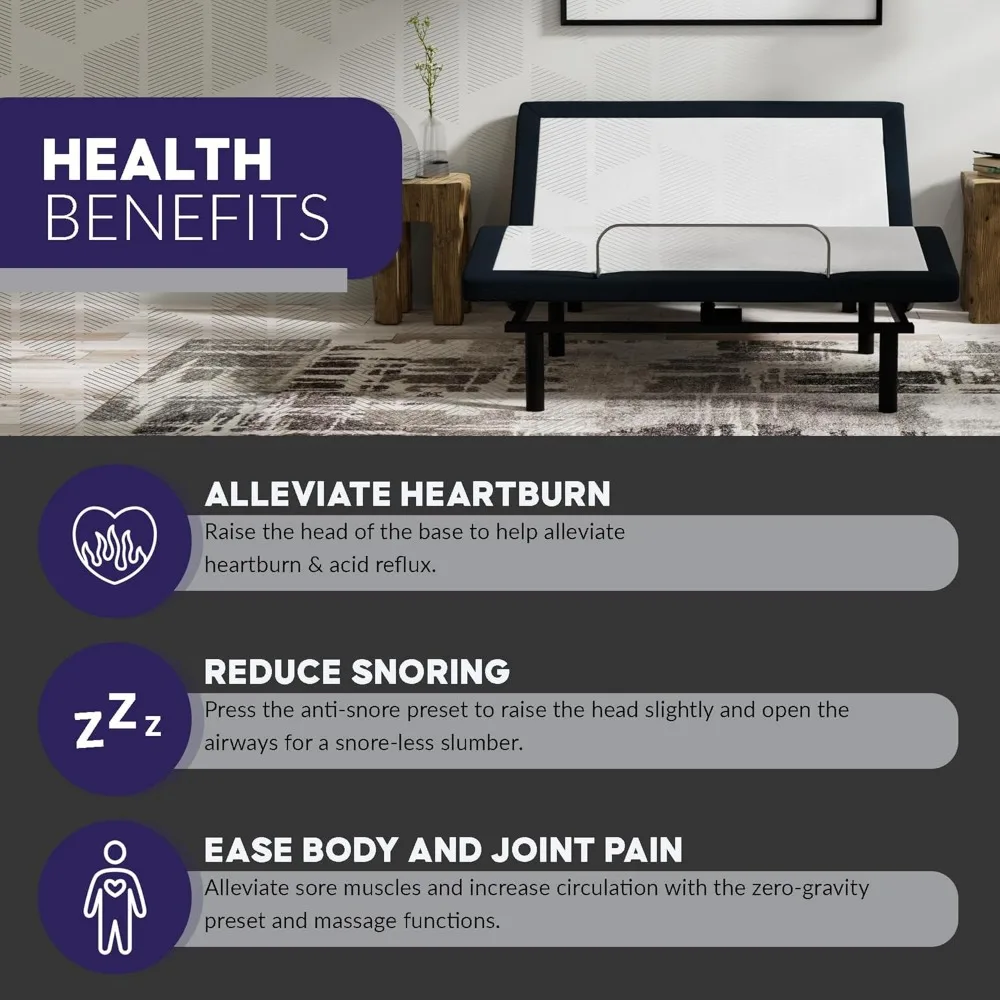 - Health-Designed Sleep – Raise your head and feet to help open airways, alleviate congestion or indigestion, and relieve pressure on the lower back.