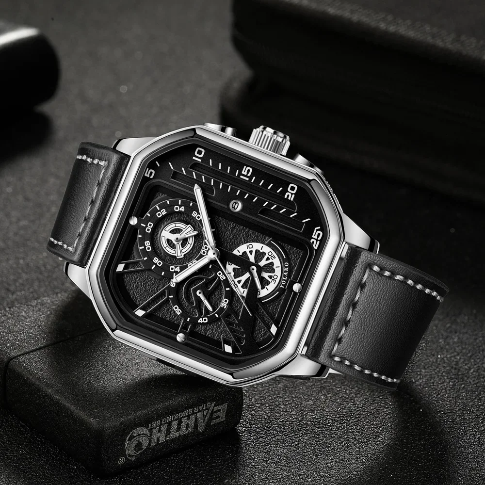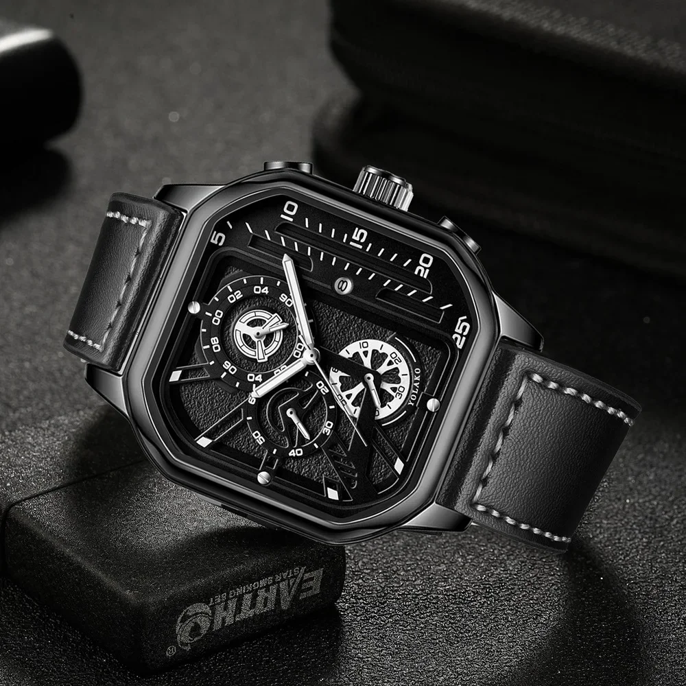 Retro Sport Watch Fashion Waterproof Quartz Wristwatch for Men Reloj Hombre Square Men Watches Leather Strap Black Quartz Watch