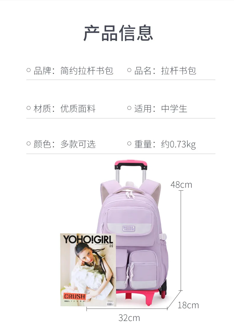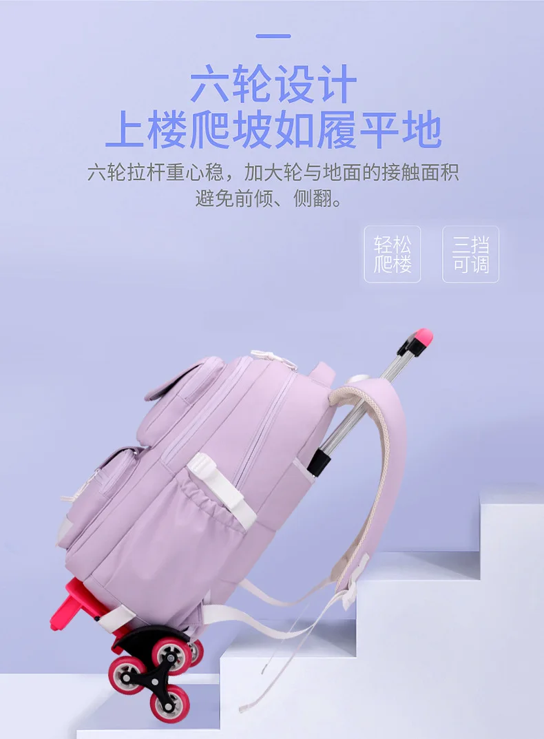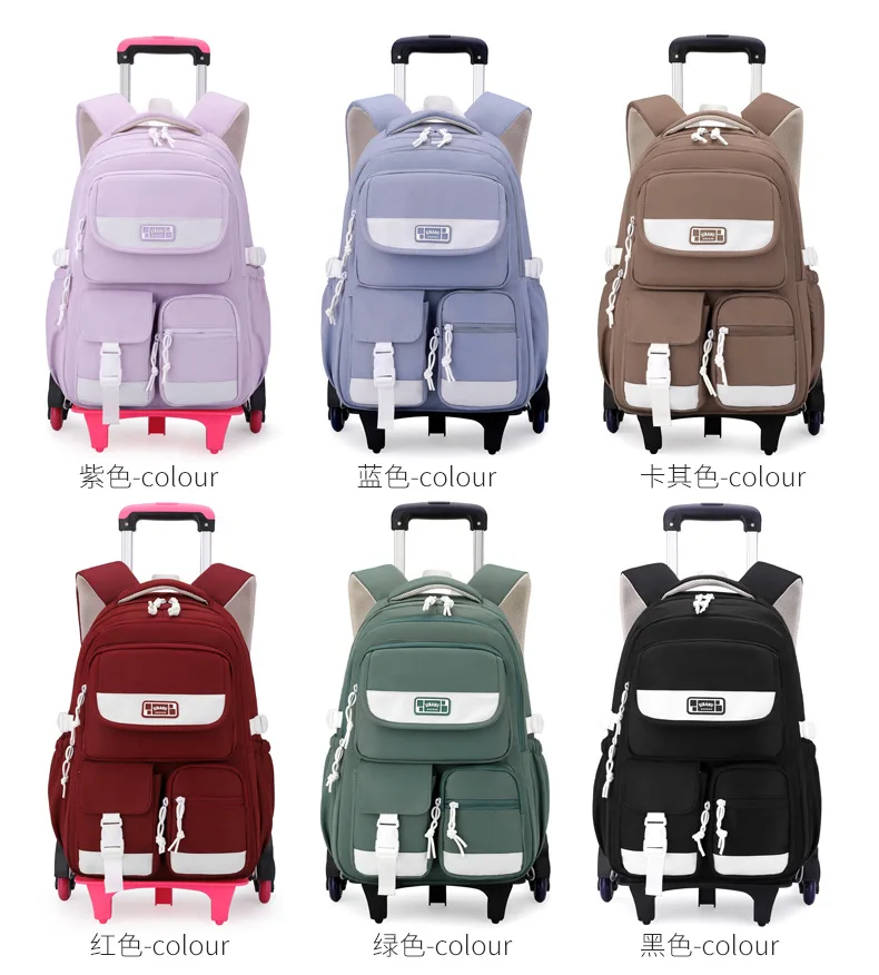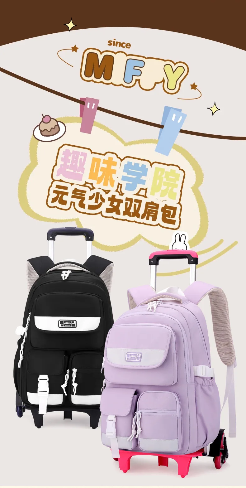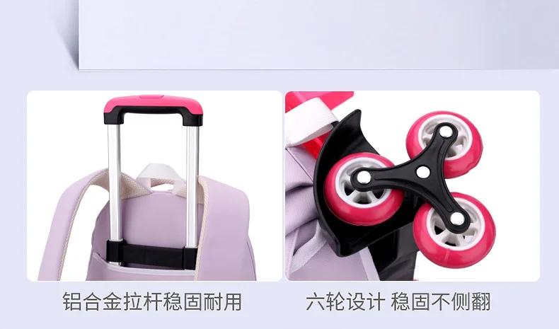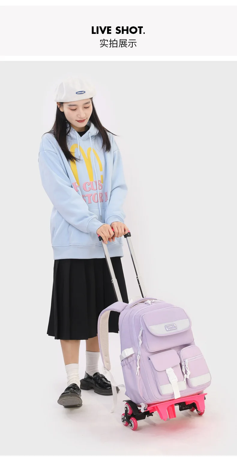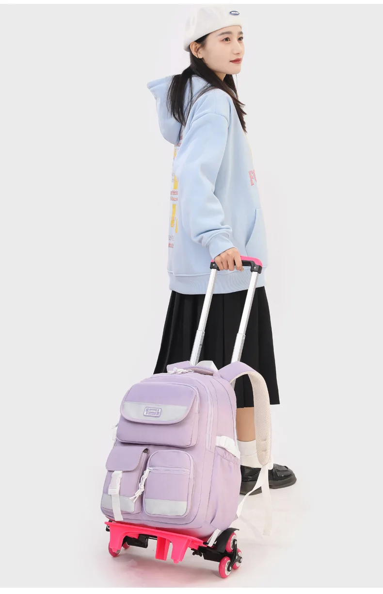 Rolling School Bags for Girls Backpack Children Waterproof School Backpacks with Wheels Middle School Trolley Luggage Back Pack