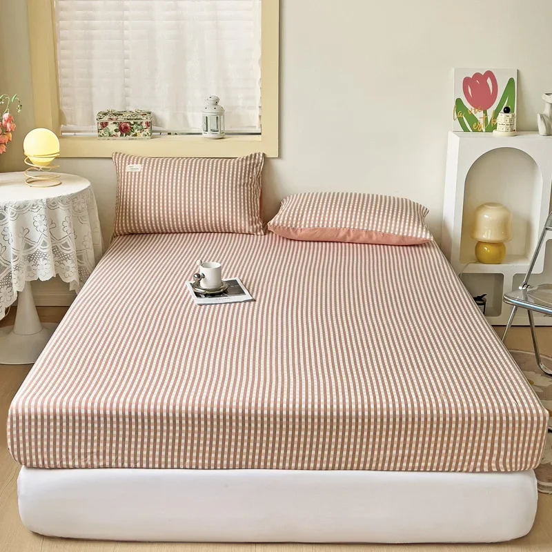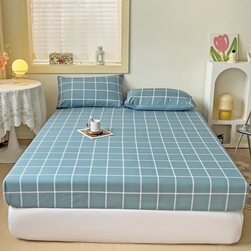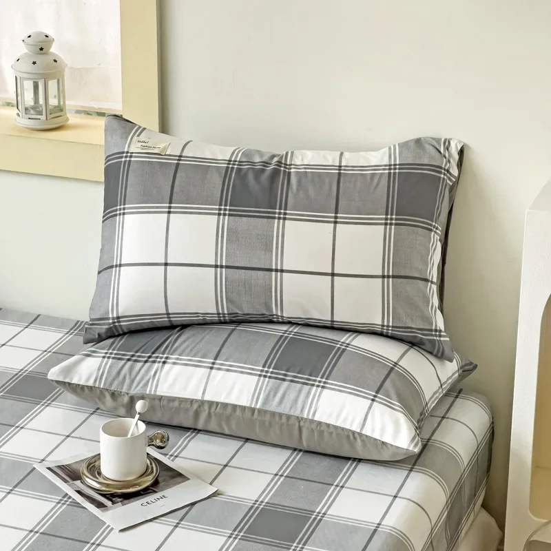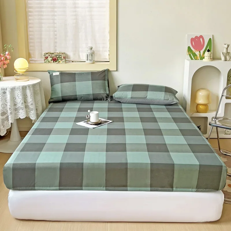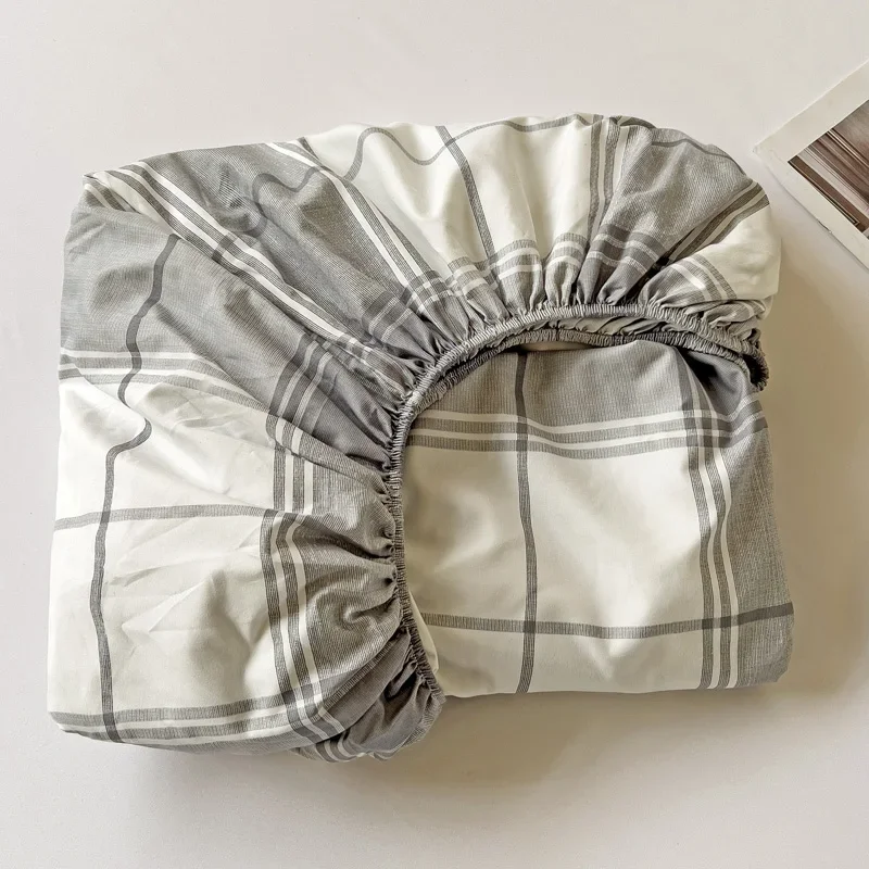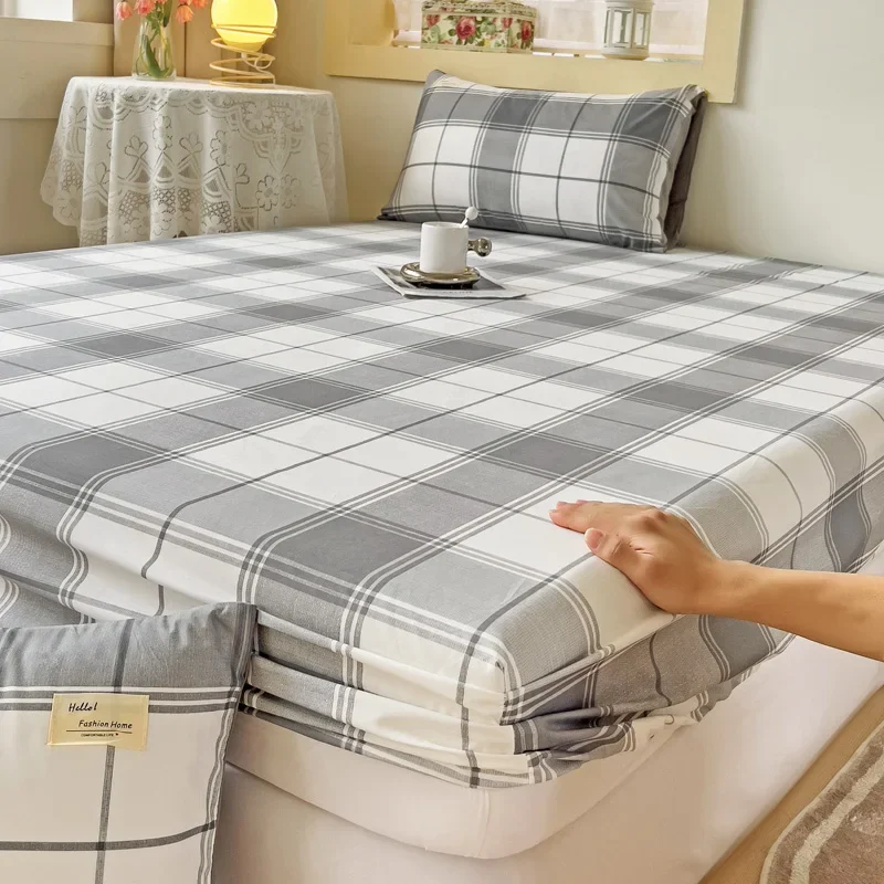 Simple Gray Checkered Fitted Sheet Set 3Pcs Geometric Plaid Non-slip Elastic Bed Cover with 2 Pillowcases Home Bedding Set