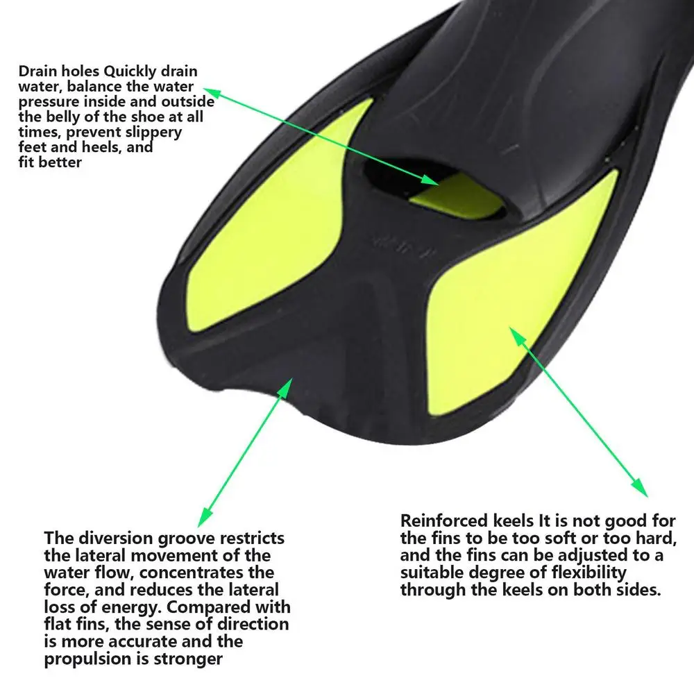 Snorkel Fins Swimming Flippers Diving Fins Adult Short Snorkel Swim Fins Full Foot Swim Flippers Travel Size for Snorkeling