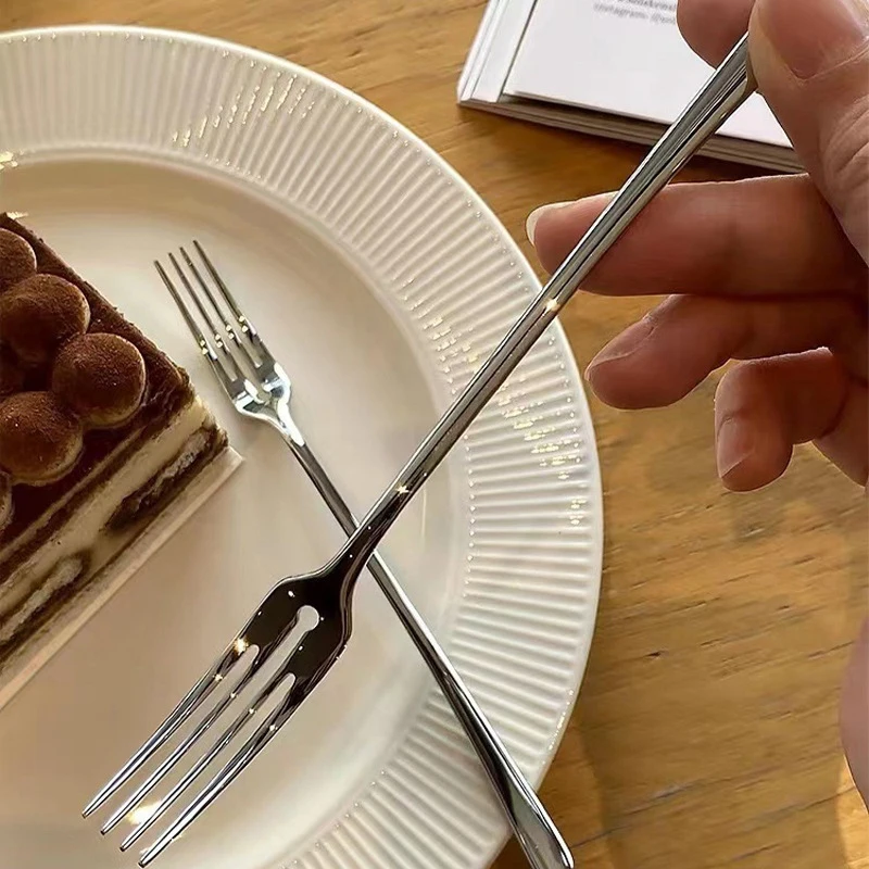 Stainless Steel Dinner Fork Long Handle Table Forks Set Korean Cutlery Four Tine Salad Dessert Fruit Forks Kitchen