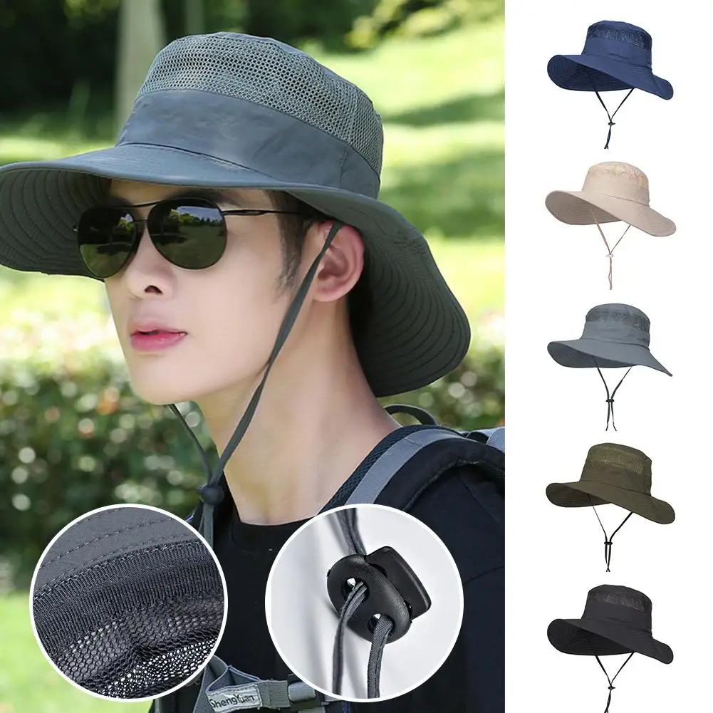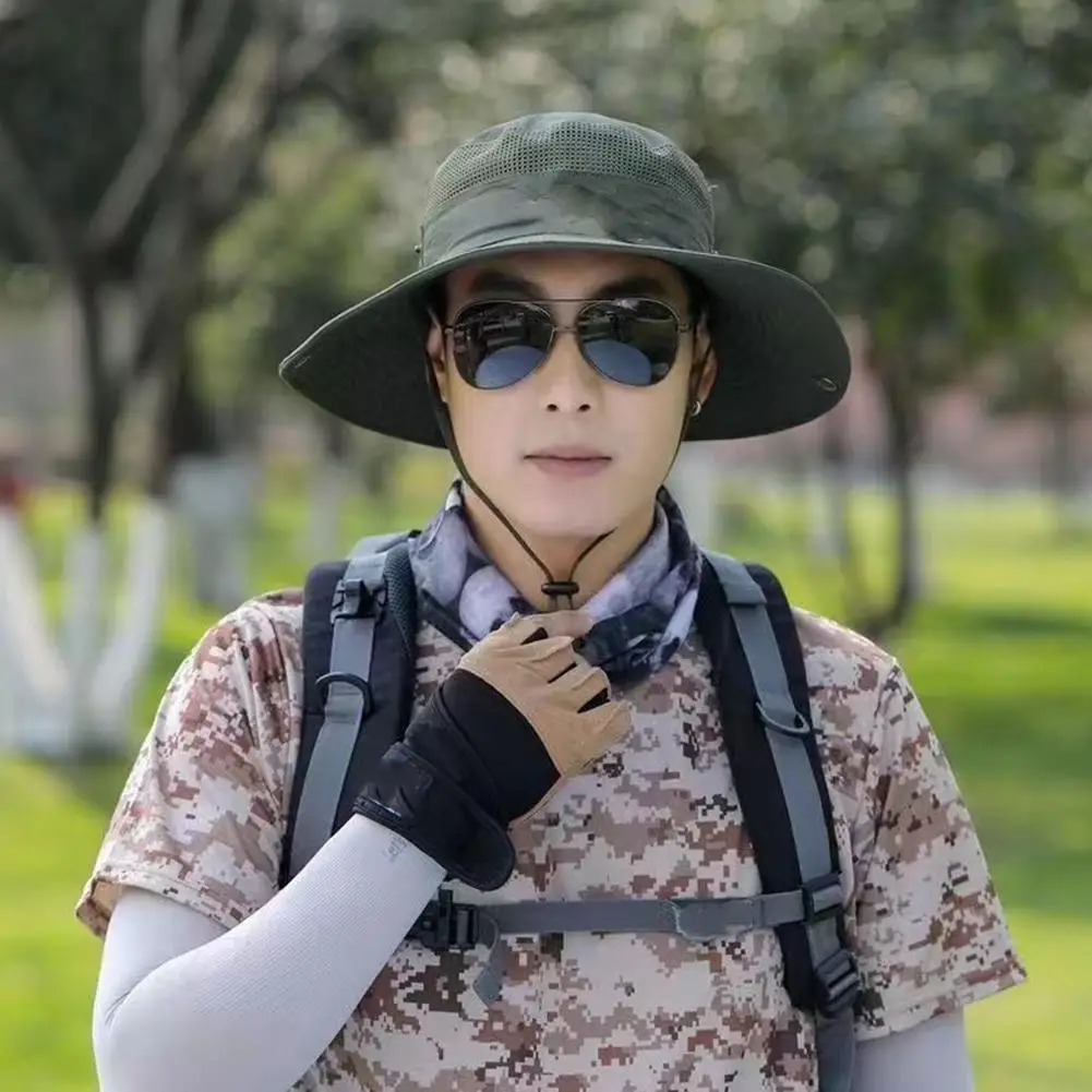 Summer Cool Mountaineering Cap Mesh Breathable Men Sun Hat Large Brim Outdoor Visors Fashion Male Fisherman Hats