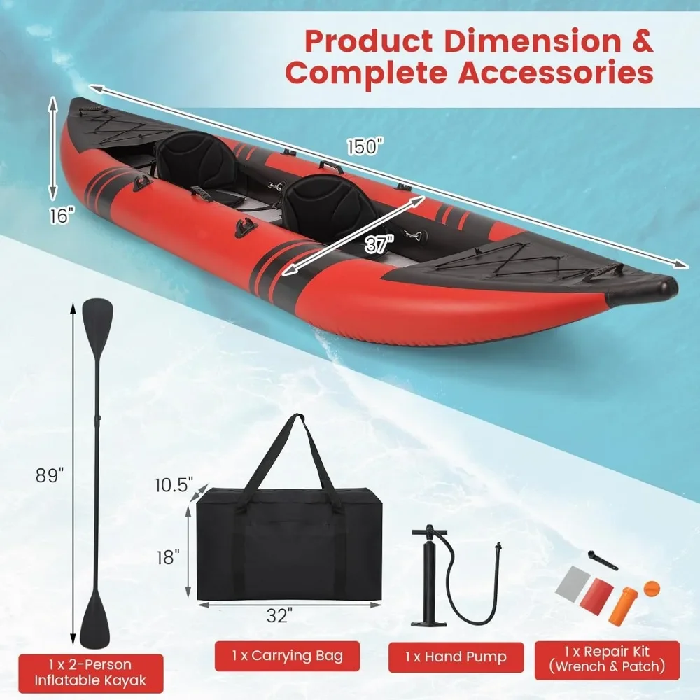 Tandem Kayak with 2 Aluminum Paddles, 12.5Ft 507lbs Inflatable Kayak, 2 Padded Seats, Footrests, 2 Fins, Hand Pump Tandem Kayak