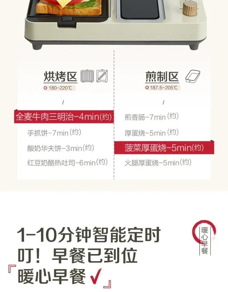 Toaster Oven Sandwich Breakfast Machine Household Small Light Food Machine Lazy Multi-Function Waffle Toast Press and Bake