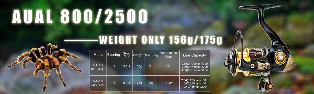 Product Feature: 1. Lightweight and super strong composite body and rotor. 2. Special gear drive mechanism for ultra-light handle rotation and super-amooth feeling. 3. Dual propulsion anti-twist line roller 4. Direct drive machined aluminum handle 5. Stainless steel main shaft and main gear shaft 6. Double anodized machined aluminum spool 7.Targeted fish : trout bass perch pike crappie etc. Product Details: 1. FS800 | Weight: 175g | Gear Ratio: 5.2:1 | Bearing: 9+1BB | Max Drag: 4KG | Line Capacity(mm-M):0.128/100 0.148/80 2. FS1000 | Weight: 178g | Gear Ratio: 5.2:1 | Bearing: 9+1BB | Max Drag: 4KG | Line Capacity(mm-M):0.15/130 0.165/100 Package: 1. 1pcs*FS reel 2. 1pcs*reel bag