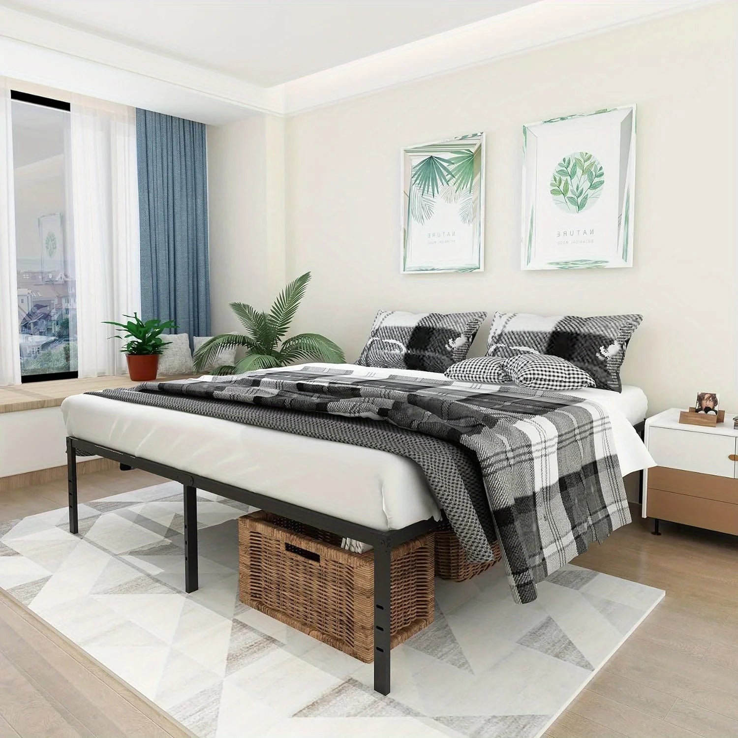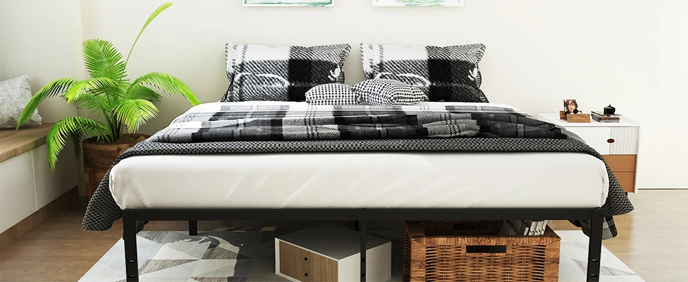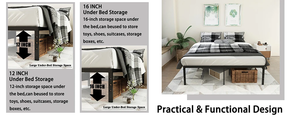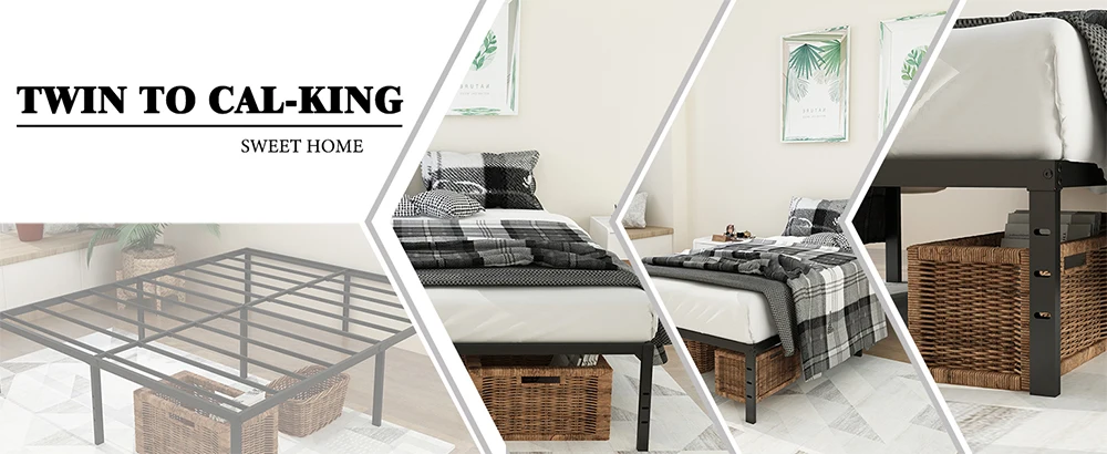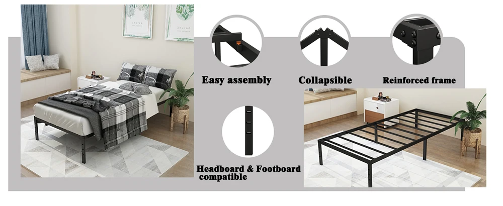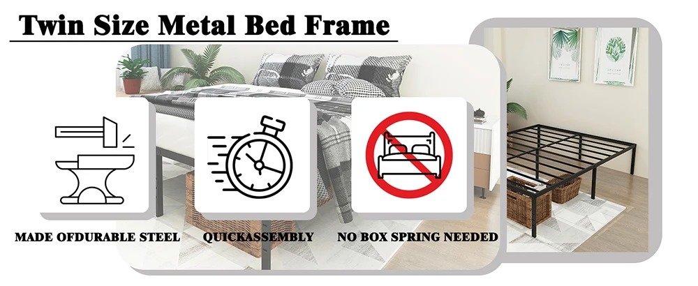 Twin Bed Frames Metal Platform Full Queen King Bed Frame 14/18 Inch Heavy Duty Metal Slat Support Underbed Storage No Box Spring