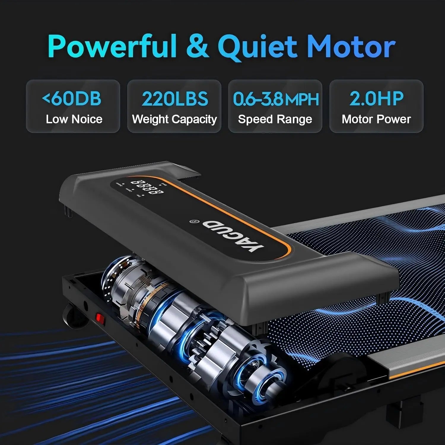 Powerful Motor - This walking pad adopts an advanced motor which can reach speed of 0.6-3.8 mph and can withstand 220 pounds of weight. You can enjoy a quiet and comfortable workout experience with our under desk treadmill for home and office.