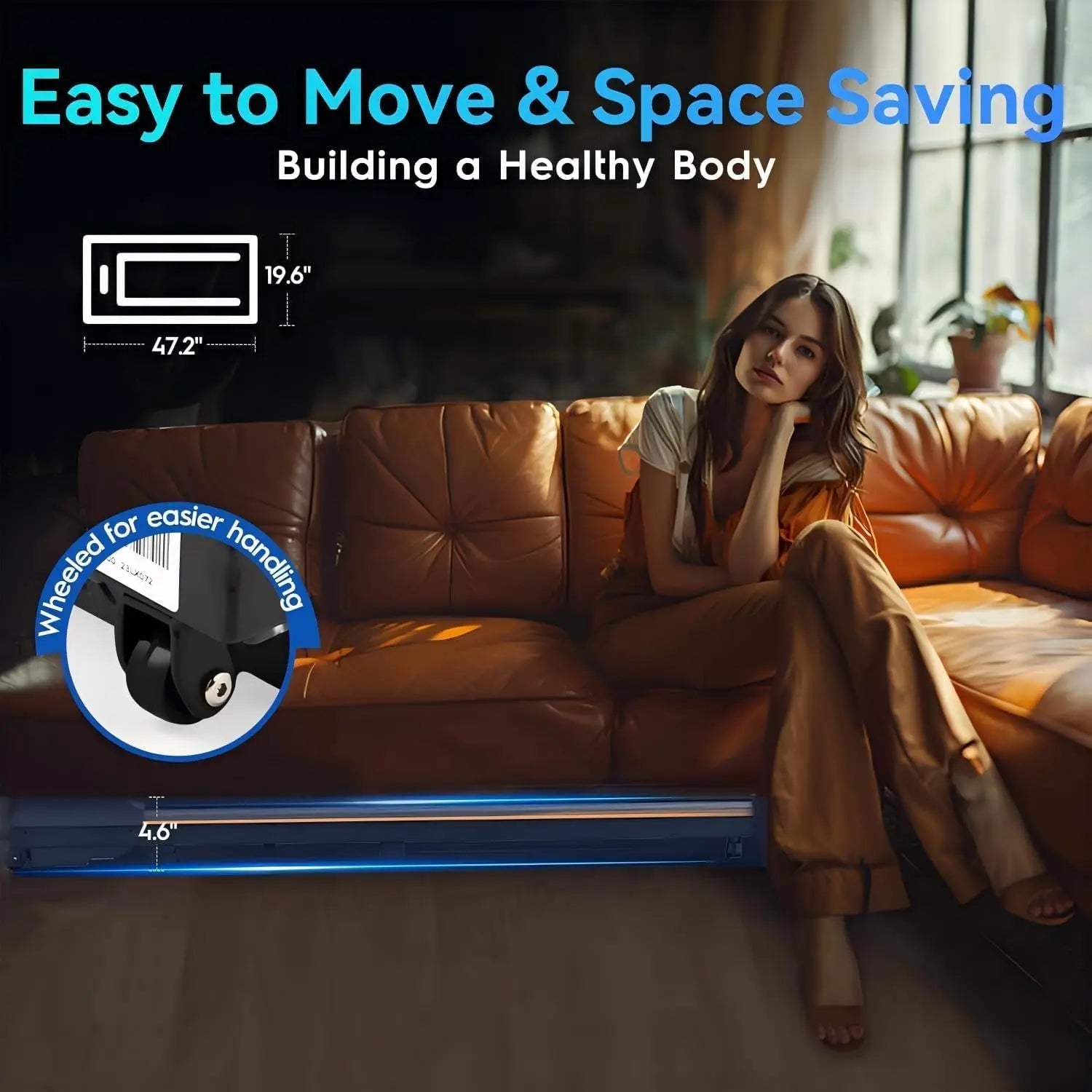 Compact & Space Saving Design - The under desk treadmill measures 47.2 x 19.6x 4.6 inches which is ready to use out of the box. With transportation wheels and compact design, it’s easy to move and can be placed on the sofa, corner or under the bed. Don’t worry it will take up too much space in your home.