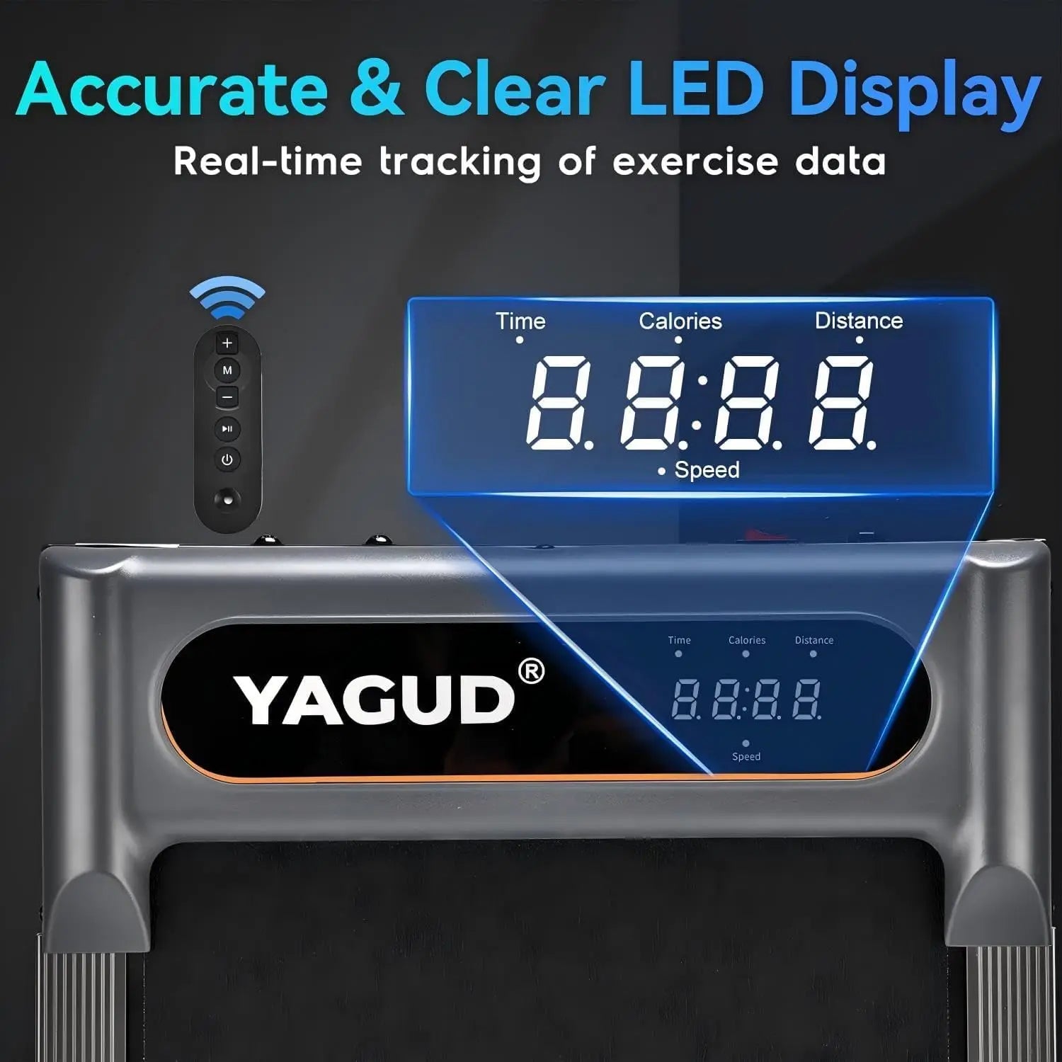 LED Display & Remote Control - Our walking pad treadmill is equipped with LED Display, showing speed, distance, time and calories clearly. Users can track the workout data at any time. With a remote control, you can adjust the speed and start/stop the walking pad without interrupting your exercise.