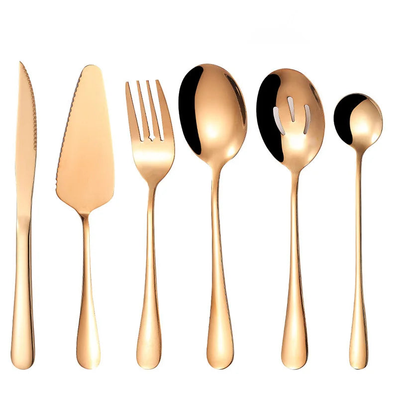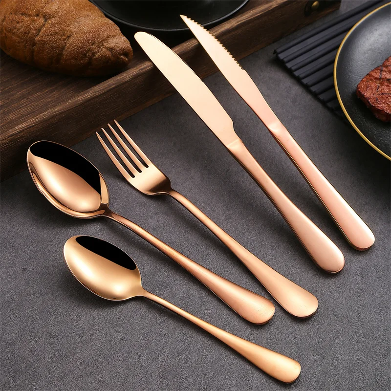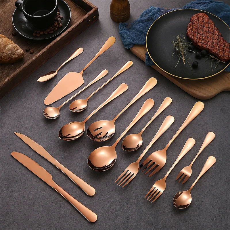 Western Rose Gold Cutlery Set Stainless Steel Steak Knife Serving Fork Spoon Cake Shovel Dinnerware Set Utensils for Kitchen
