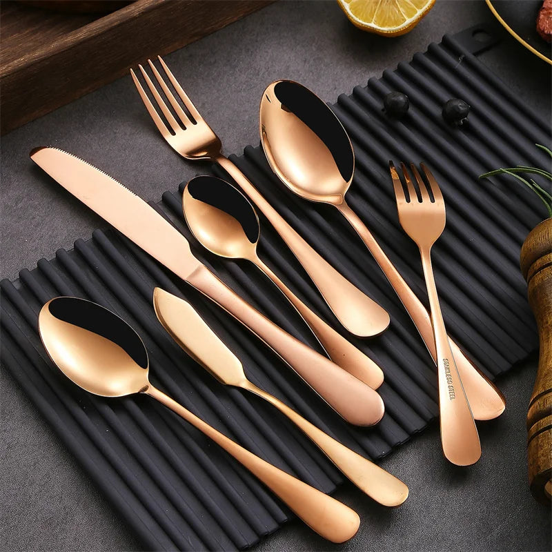 2.High-quality materials: each matte rose gold set is made of stainless steel and is finished with a repairable golden PVD coating to maintain its shape without bending; with smooth edges and a round bottom, this gold set is comfortable to use