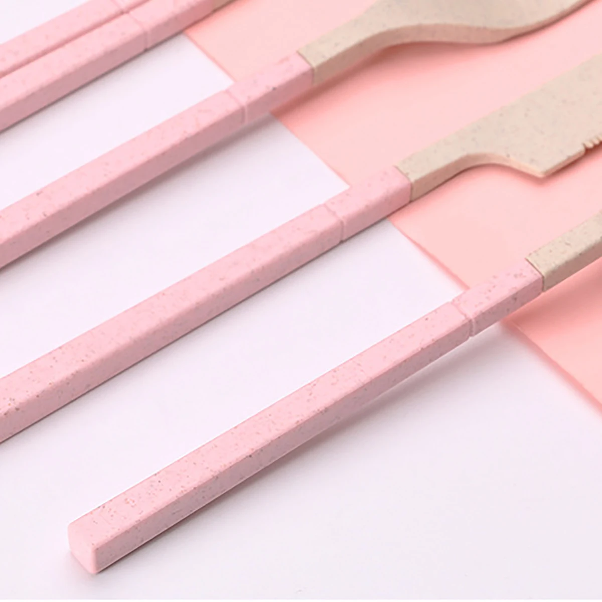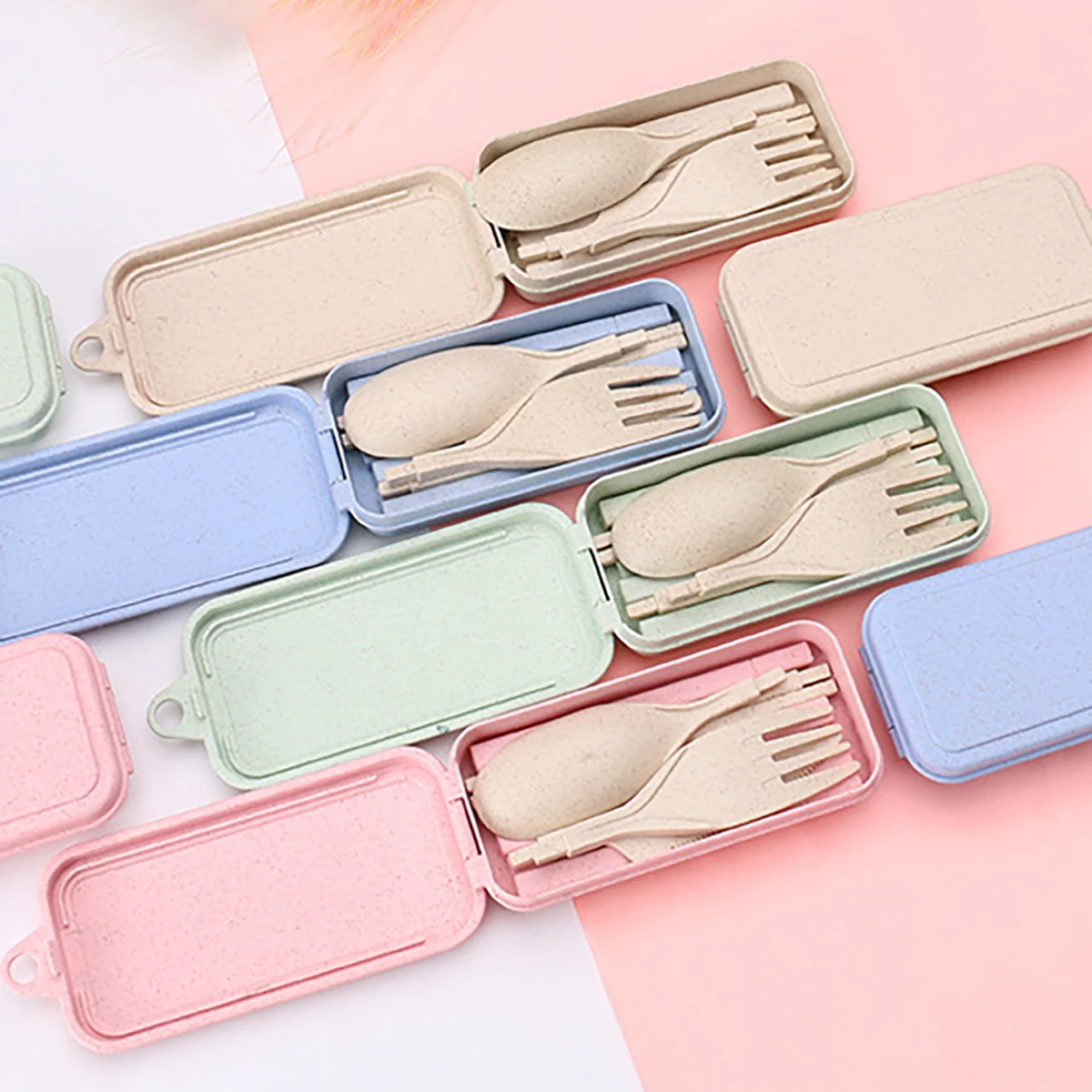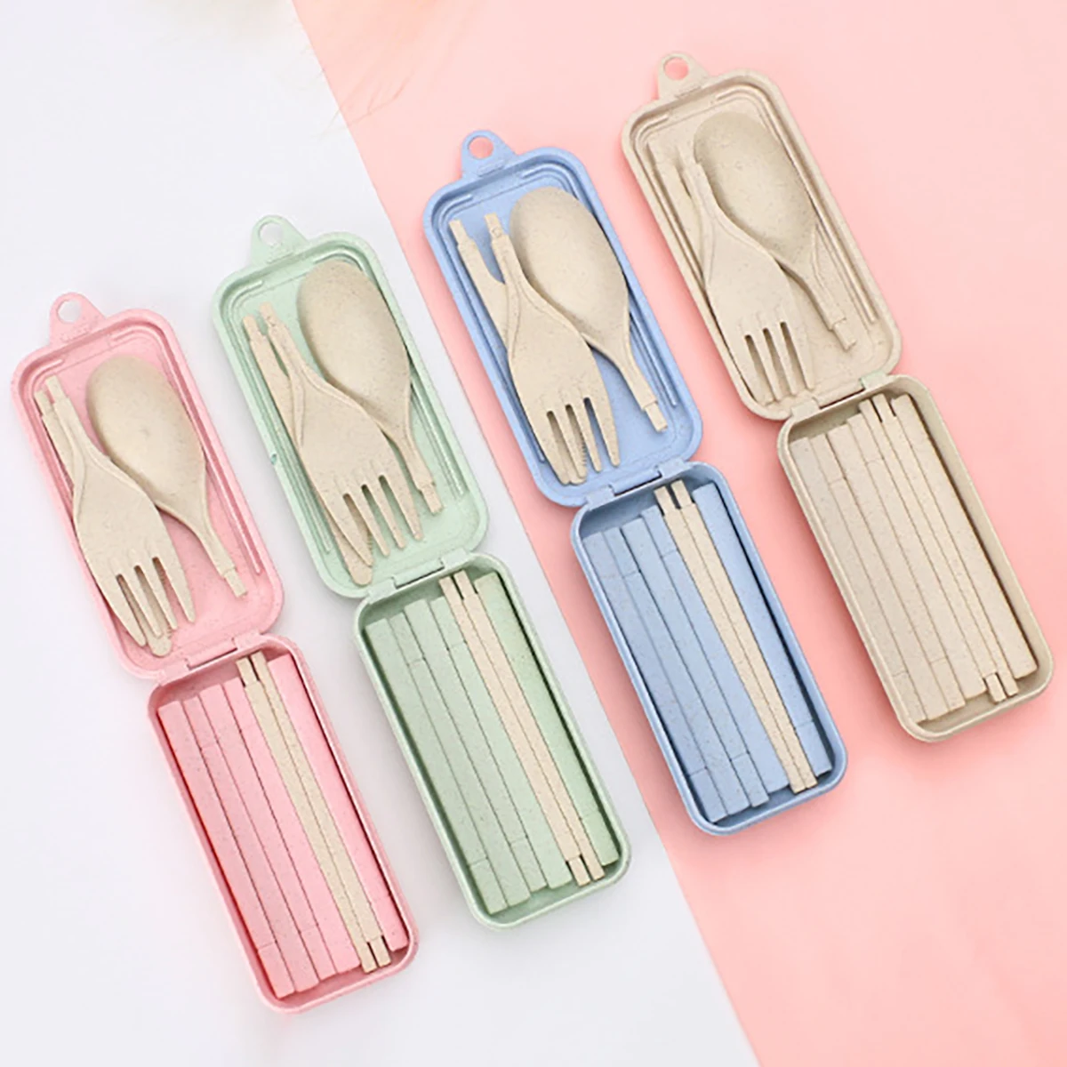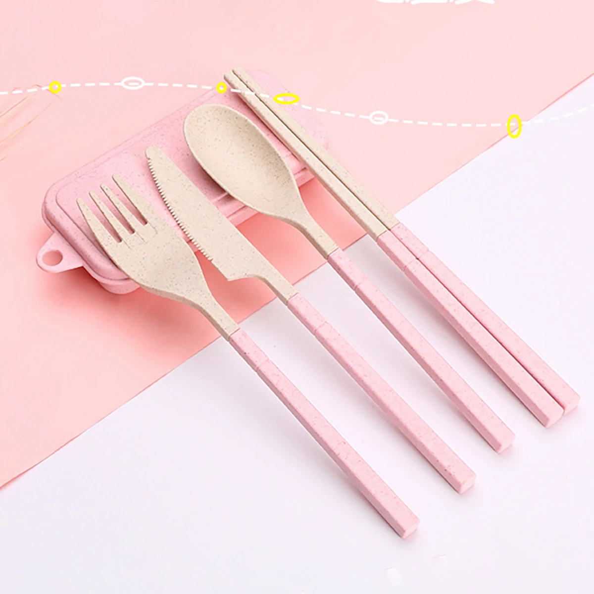 Wheat Straw Portable Tableware Knfe Fork Spoon Chopsticks Dinnerware Set with Storage Box Detachable Travel Cutlery for Student