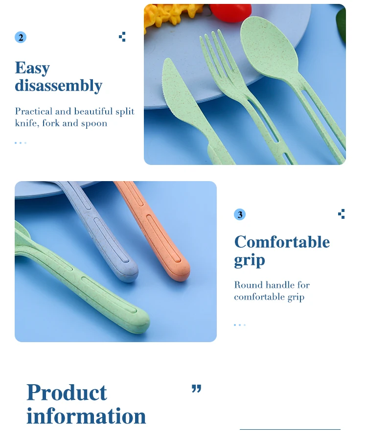 Strong and durable: These portable wheat straw tableware are durable, not easy to damage and bend, not to mention rusting like an iron spoon, which is safer than ordinary plastic utensils.