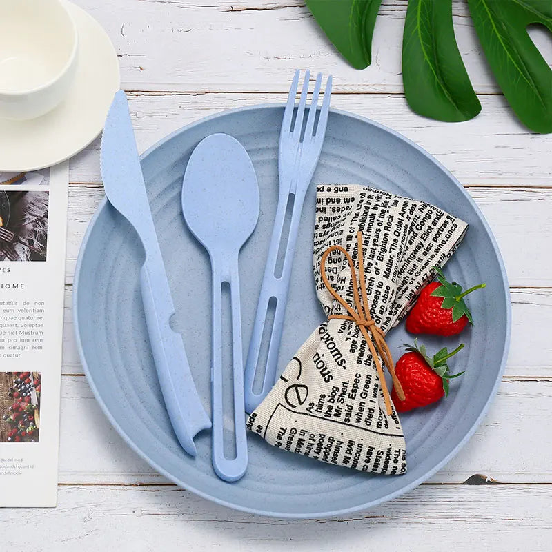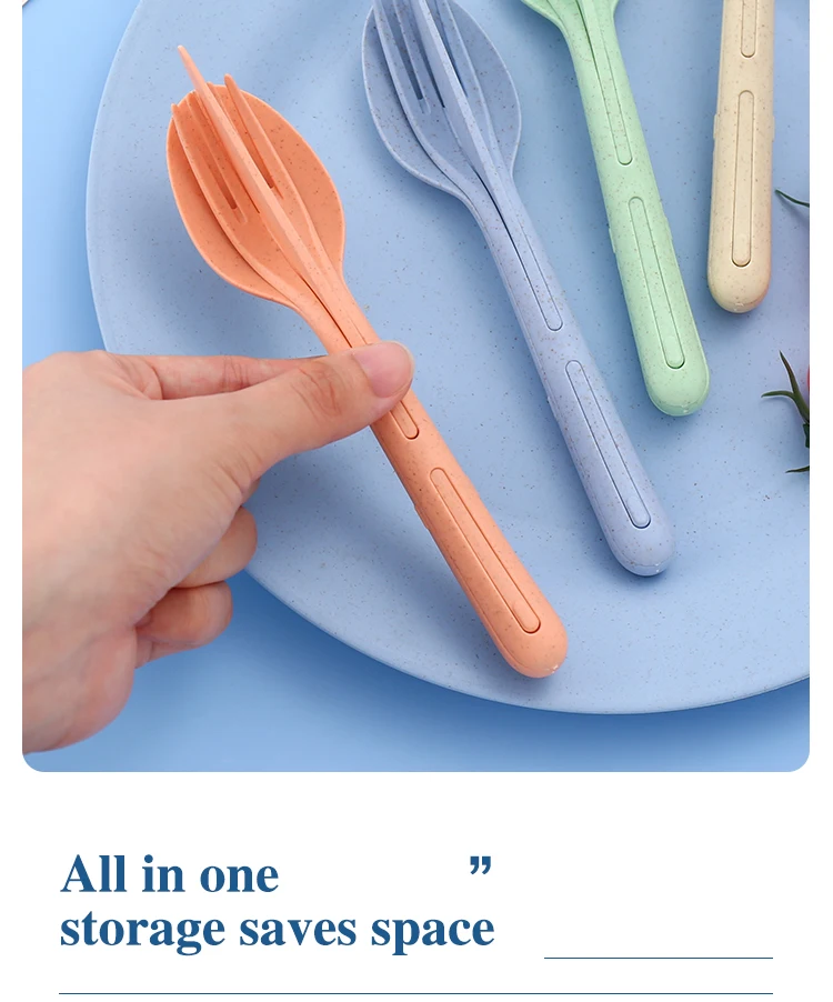 Wheat Straw Tableware Set Eco Friendly 3In1 Cutlery Picnic Tableware Office School Portable Small Dinnerware Camping Cutlery Set