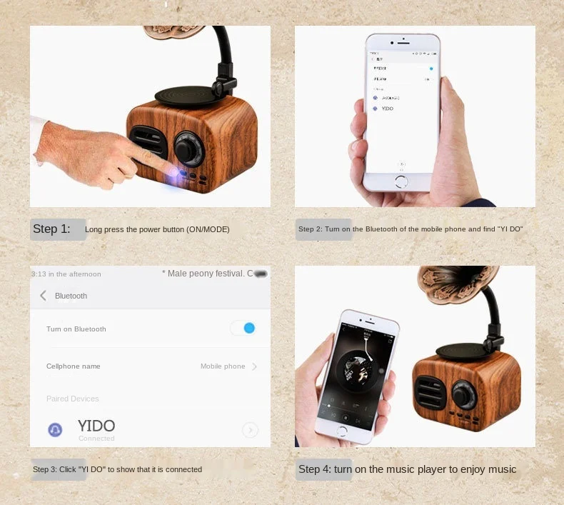 Wireless Bluetooth Speaker - Enjoy your relaxing time with the retro phonograph, easily and conveniently connect iPhone, android, laptop and any device with retro Bluetooth speaker.
