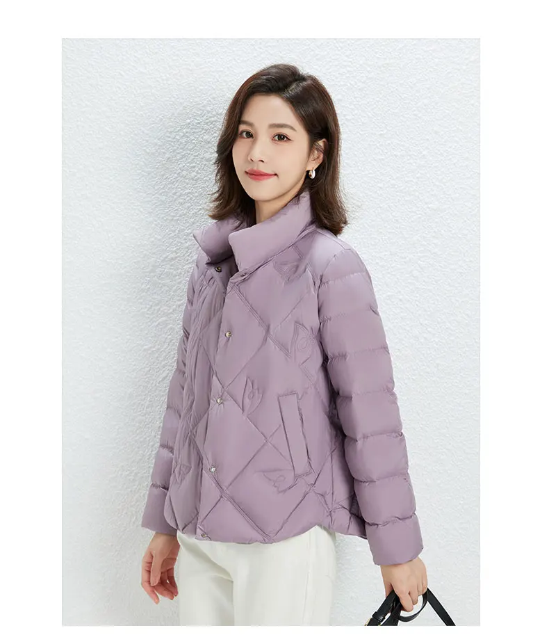 This is one good quality woman winter coat, duck down jacket contains 90% white duck down.It means 100g material contains 90g white duck down.90% white duck down, it's the highest level and the best warm.