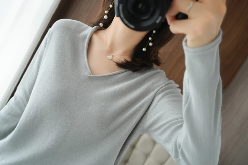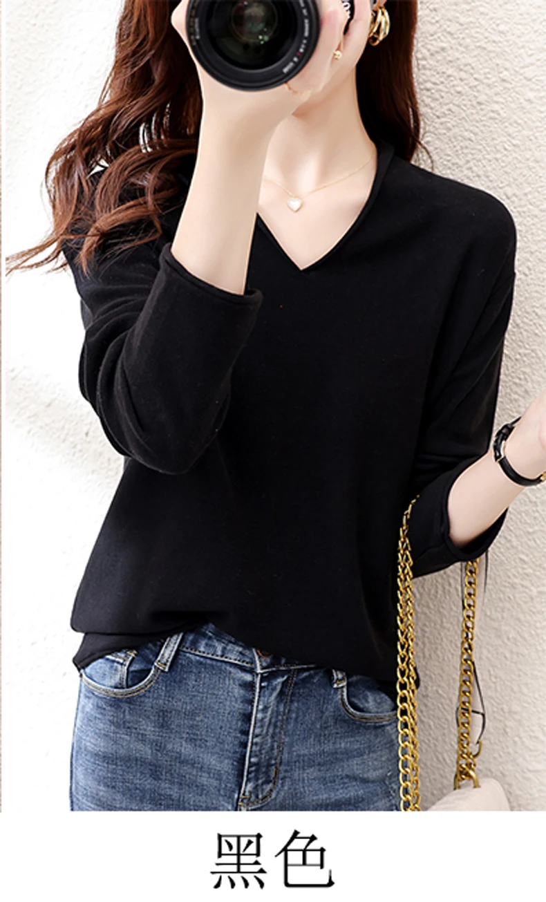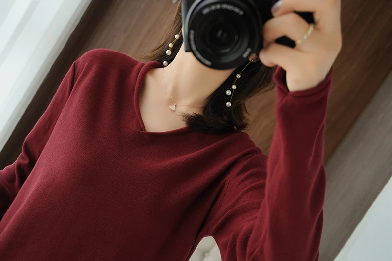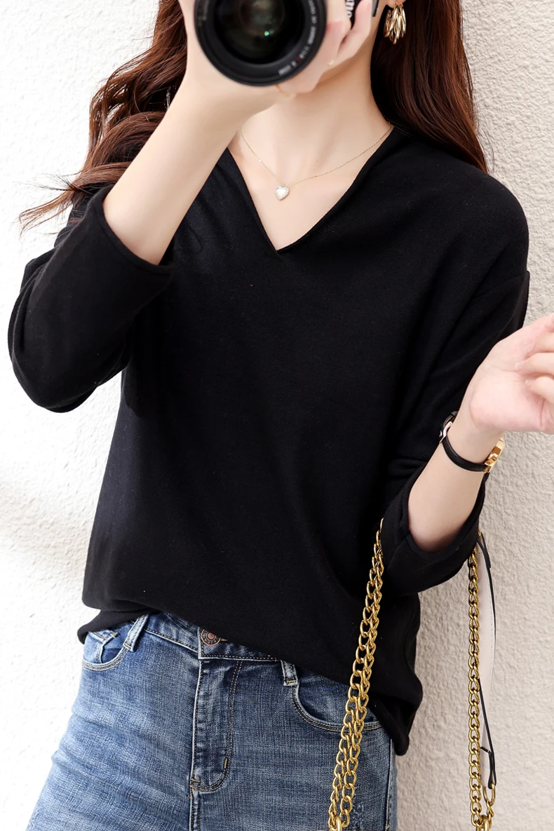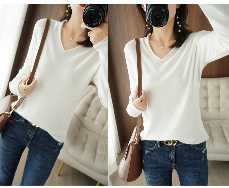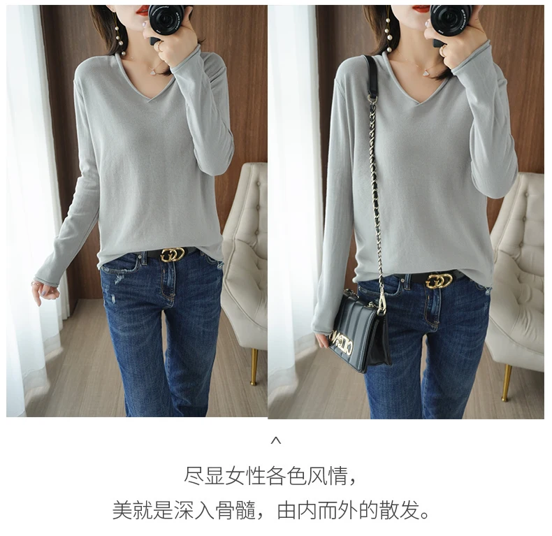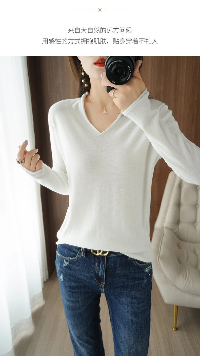 Women Curled V-Neck Pullover With Hat 100% Cotton Sweater Autumn Winter Knit Clothing Soft Bottoming Long Sleeve Solid Tops