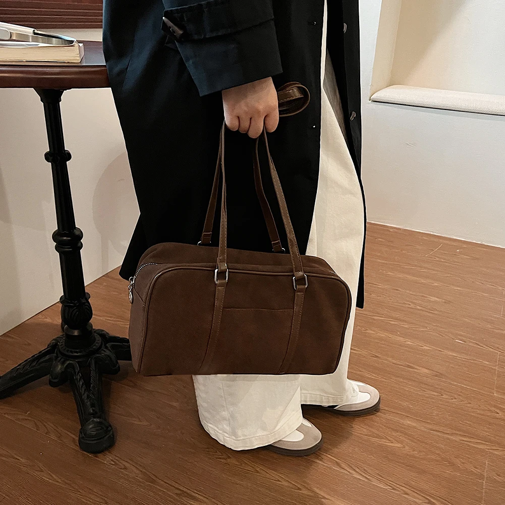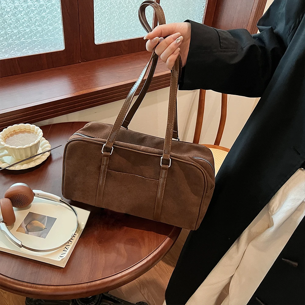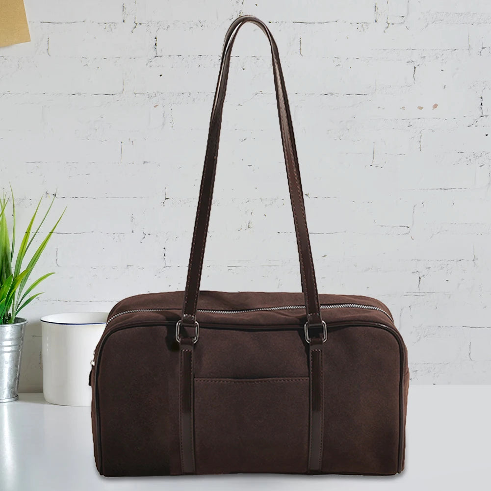 Women Faux Suede Shoulder Bag Fashion Underarm Bag Large Capacity Elegant Shoulder Purse Vintage Commuting Bag for Autumn Winter