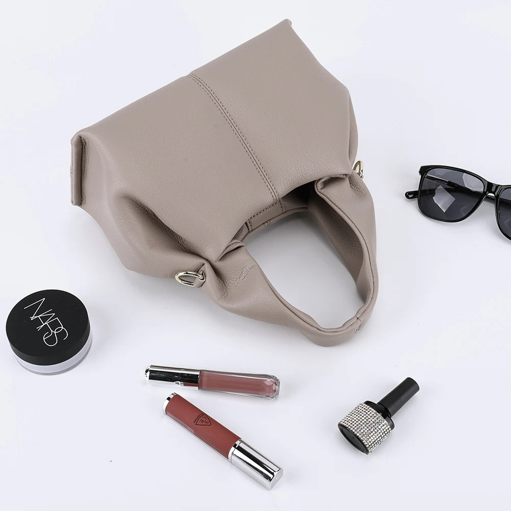 Dumpling Clutch Purse Solid Color Retro Crossbody Bag with Removable Strap Tote Shoulder Bag PU Leather Top Handle Bag for Women Feature: